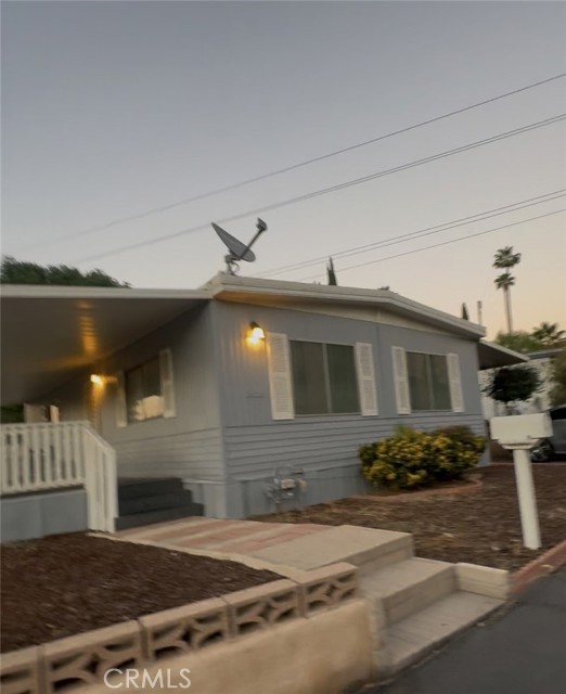 Enjoy mountain views from this updated home in Reche Canyon Mobile Estates. Spacious corner lot with yard, covered carport, and storage shed. Bright o...