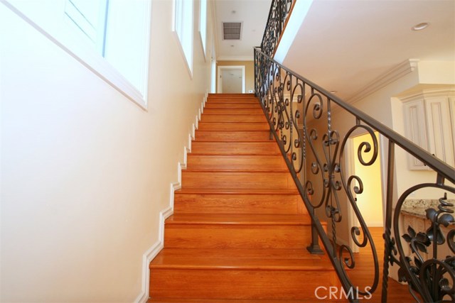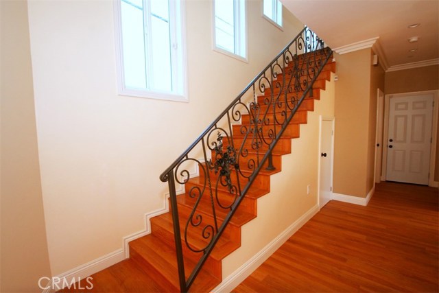 Welcome to this gorgeous newly built home! This stylish designed residence has a warm contemporary design with five bedrooms, and 3 full bathrooms with the finest materials and finishes, including high vaulted ceilings and double pane windows which align with the stairway and allows for maximum light into the home. Staircase has rich hardwood flooring and handcrafted wrought iron. Thoughtfully arranged indoor and outdoor space. Lots of windows and natural light illuminates this home. The kitchen is detailed with fine European cabinetry, quartz-stone counter tops, and a large custom slab kitchen island. Beautiful detailed crown molding all throughout the house. The exceptional master suite includes a sitting area and separate patio deck private to this room. 2 Car attached garage with direct access. All new landscaping. This offering is close to schools, shopping, 710 Freeway and bus transportation, friendly location, functional floor plan and high quality finishes. Move right into this turnkey home and enjoy the extraordinary Lifestyle. This home shows like a mode!. Home qualifies for excellent program with no mortgage insurance!