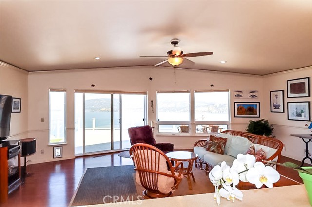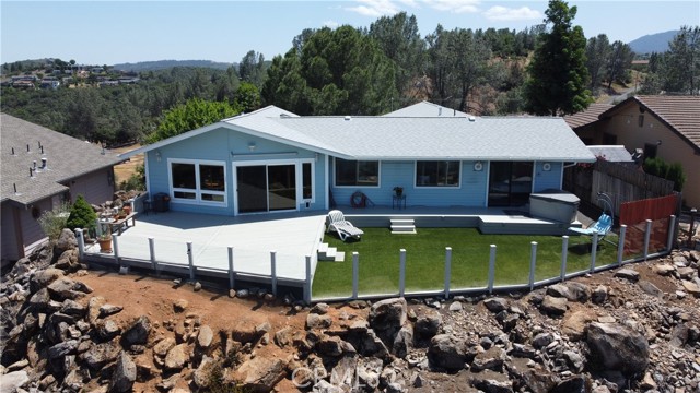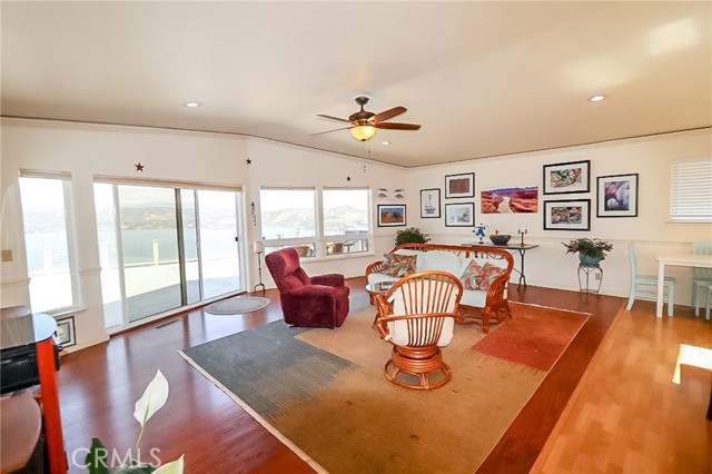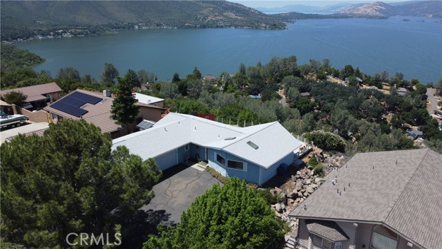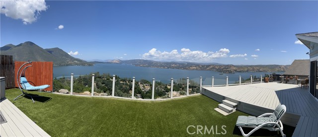 AWESOME PANORAMIC LAKE & MOUNTAIN VIEWS from private, quality ridgetop home. These are 10 out of 10 views of iconic Mt Konocti and the broad expanse of Clear Lake, and will blow you away. Large, full length secluded deck, with a hot tub, allowing you to appreciate the grand vista, left unobstructed by glass railings. Perfect for entertaining or enjoying nature's beauty displayed before you. The home has as many as 4 bedrooms with 2 baths and then a set apart studio with its own bath and kitchenette for guests, as a BnB rental, with its own honeymoon deck for extra income or separate studio/office space. So as many as 5 brms/3 baths. The outdoor living space opens through sliding glass doors off both the living room and the master bedroom. The living space is a great room with vaulted ceiling and crown moldings, laminate flooring and an upgraded open kitchen with custom corian counter tops with tile backsplash and a large island so you can enjoy the view while working there. Skylights bring in the natural light. Partial vinyl siding helps save you on maintenance, and it is fenced for pets and gardening. Also single level with minimal steps. The home backs onto a 20 acre undeveloped parcel for extra privacy with a fire break for fire safety. This is an expansive quality home in an enviable location.