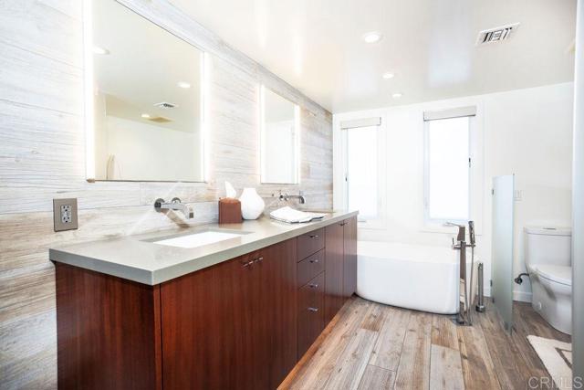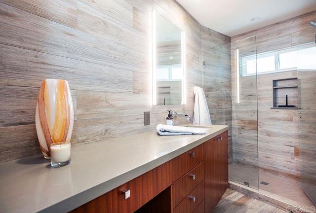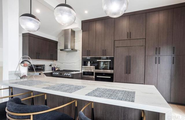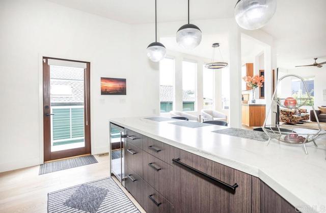 Welcome to coastal living at its finest. This beautifully remodeled Del Mar residence, updated between 2016 and 2023, offers over 3,000 square feet of thoughtfully designed living space with 3 spacious bedrooms plus a dedicated office. Located just a short stroll from Torrey Pines State Beach, this home seamlessly blends modern elegance with beachside tranquility. Enjoy breathtaking coastal views from the expansive rooftop deck, perfect for relaxing sunsets or entertaining guests. The stunning kitchen remodel features Miele appliances, a Sub-Zero refrigerator, custom-made cabinetry, and a striking quartz waterfall countertop. French oak wood floors flow throughout, adding warmth and sophistication. Additional upgrades include an owned solar system and a full house water filtration and conditioning system for ultimate comfort and efficiency. Experience the best of Southern California lifestyle in this move-in ready retreat, moments from Del Mar’s beaches, trails, and vibrant village.