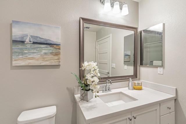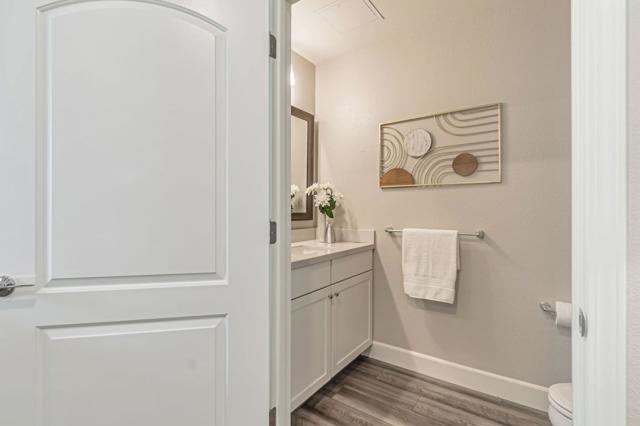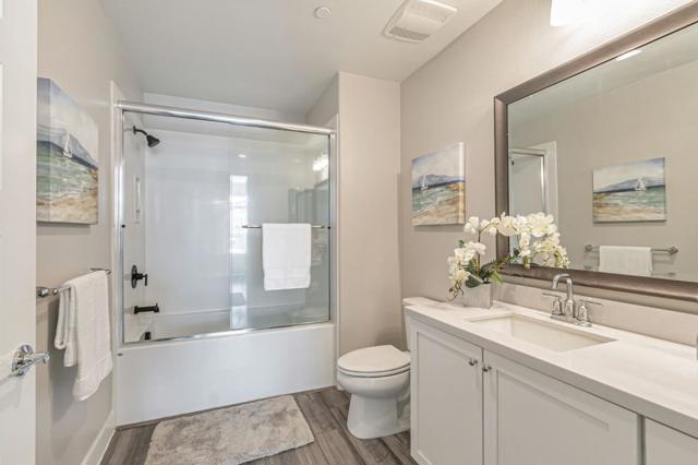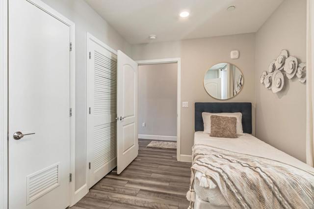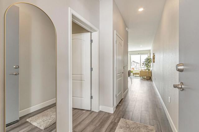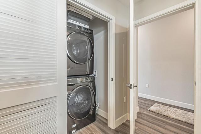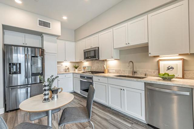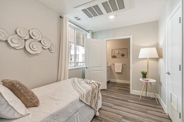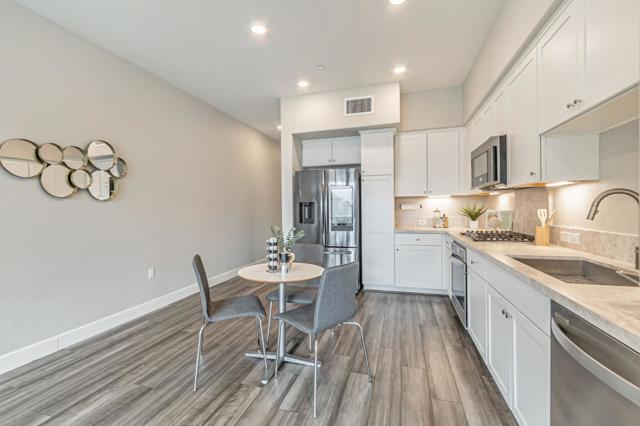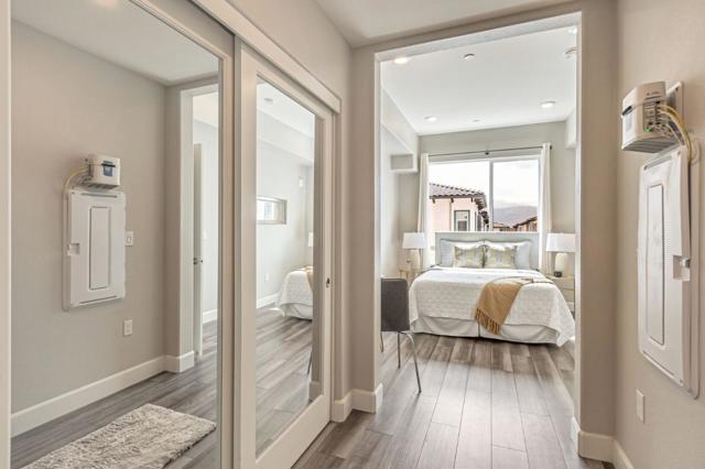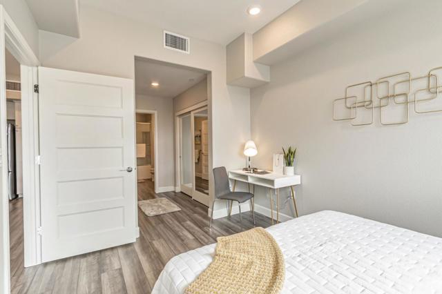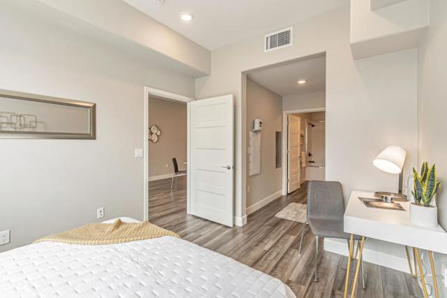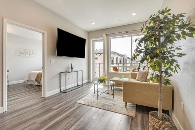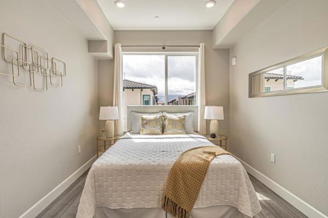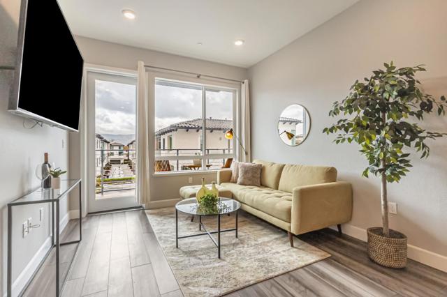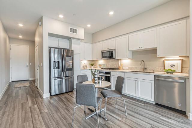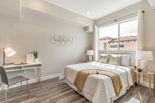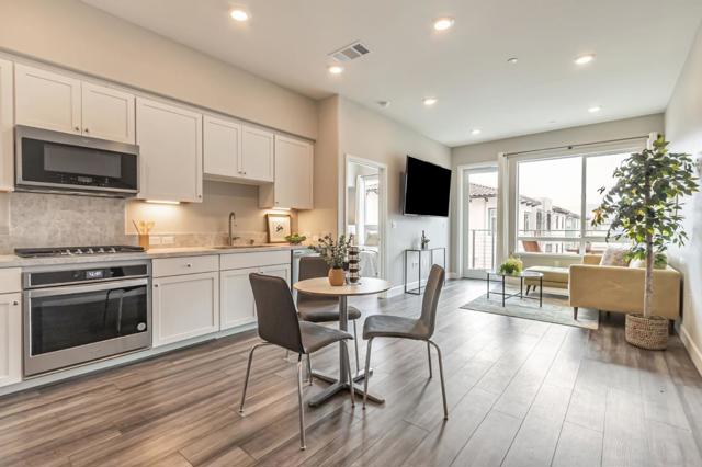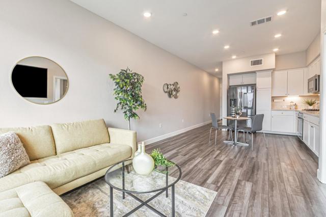 Welcome to this charming open and versatile floor plan; 1-bedroom condo with a den that can be used as a 2nd bedroom/den/home office. This executive condo is designed with upgraded top-of-the-line amenities. 3027 Manuel Street #6 is located in the vibrant much-sought out Communication Hills. This cozy 822 sq ft residence offers a well-equipped kitchen featuring a gas cooktop/built-in gas oven, dishwasher, microwave, smart refrigerator making meal preparation a breeze. The home boasts of beautiful laminate flooring throughout creating a modern and easy-to-maintain living space. Natural lighting from the oversized windows/patio door leads out to the balcony allows for an enjoyable morning coffee or evening sunsets. The inviting rooftop sky deck is furnished to provide relaxation and family/friends entertainment with scenic views perfect for warm gatherings and cozy evenings.. Laundry is conveniently located inside, with a full size washer and dryer included. This home was built in 2022, and lived in by its original owner. Additional features include a tandem 2-car garage & tankless hot water heater. This home is an excellent find in the heart of San Jose with essential amenities to suit your exquisite lifestyle in Communication Hill Community.