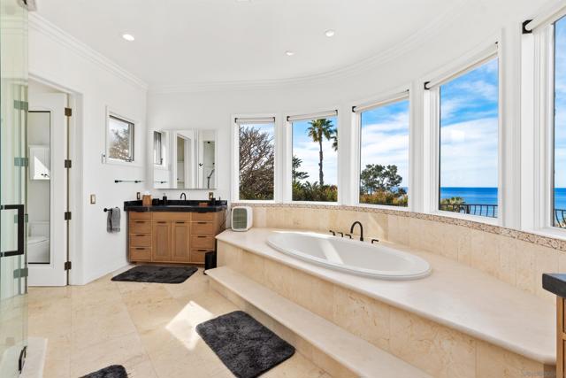 Luxury Vacation Rental. Stunning La Jolla ocean view estate. Furnished rental available during Winter & Summer break. Beautiful water, coastline, and golf course views throughout. The home has high-end upgrades from top to bottom. Spacious chef's kitchen with large custom island. 4 bedrooms all with en-suite bathrooms. Large master suite with a fireplace, spa bathroom with steam shower, and a large ocean view deck. Beautiful La Cantina doors create an amazing indoor/outdoor living experience. Enjoy the views from the gorgeous infinity edge pool and spa. The pool also has a large Baja shelf perfect for lounging. The exterior also features a covered fire pit and lounge/seating area, a BBQ island/bar, turf yard, and a trampoline. The property is close to the beach, Village, shops, restaurants, etc. This is the prefect home for the ultimate vacation. Available 7/11/26-8/15/26.