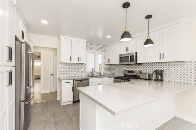 This property has been remodeled with new flooring, new doors and windows, new water heater, new AC and heater system. All 3 bathrooms have been remodeled with modern finish. New kitchen cabinet with Quartz countertop, stainless steel appliances. KitchenAid refrigerator is included. There are 4 bedrooms, 2 baths on the 1st floor and 1 bedroom/1 bath on the second floor with separate entrance. This home is located in the quiet neighborhood with huge front and backyard, within walking distance to the award winning school Ethan Allen , 3 minutes to Little Saigon and 15 minutes to the beach. The property is ready to move in. No furniture included