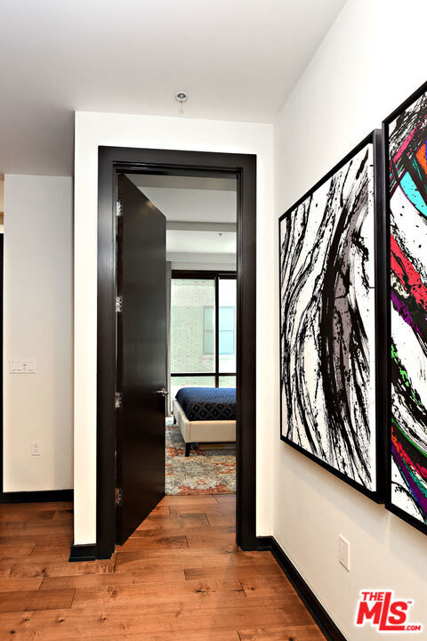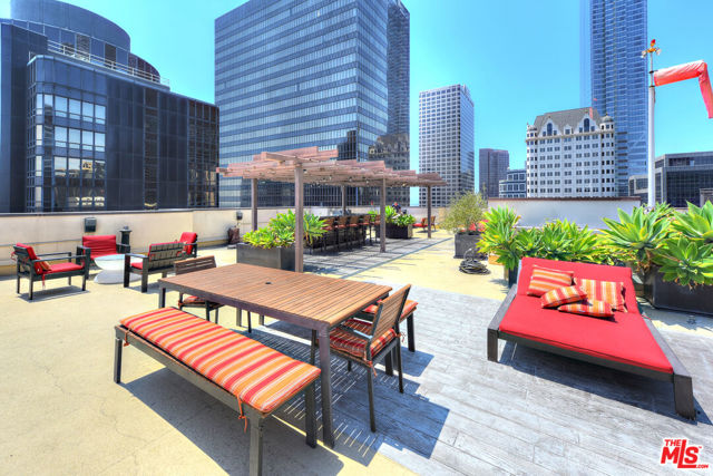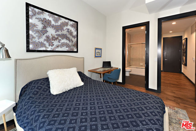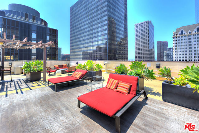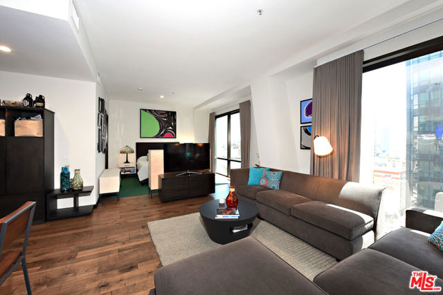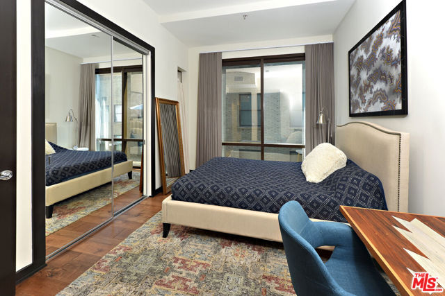 Stunning corner 2b/2b high-rise condo with dramatic floor to ceiling windows and panoramic views of Downtown Los Angeles from the 12th floor. This rare corner unit features nearly 1250sf of living space, tall 11-foot ceilings and upgraded hardwood floors throughout. Fully equipped with brand new Washer & Dryer, modern kitchen with stainless appliances and breakfast bar. Primary open plan bedroom area (or office) has large windows, an ensuite bathroom with dual sinks and a massive closet. Second bedroom is fully enclosed with a private bathroom and a large closet. There are custom roller shades as well as blackout curtains throughout the entire unit, and upgraded lighting. Includes 1 parking space in the building and a large private storage unit. City living at its finest with amenities including 24/7 staffed front desk, concierge service, gym, lounge/game room, and roof deck with BBQ, fire pit, and skyline views. Located in the heart of the Financial District of DTLA, within blocks of Whole Foods, 7th & Fig, The Bloc, LA Athletic Club, Hotel Figueroa, Wilshire Grand, Crypto Arena, FIDM, LA Live, Grand Central Market, The Broad, Walt Disney Concert Hall, The Conrad, Grand Park, and more. Rent includes water, trash, gas.
