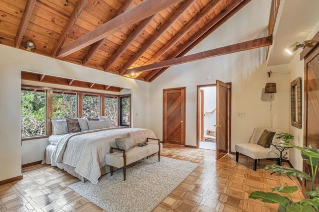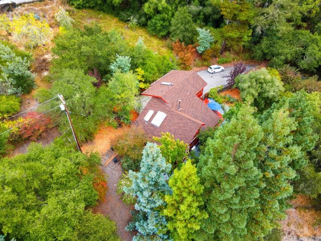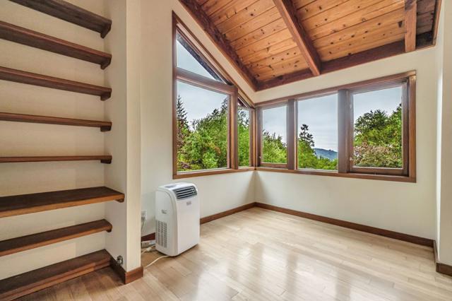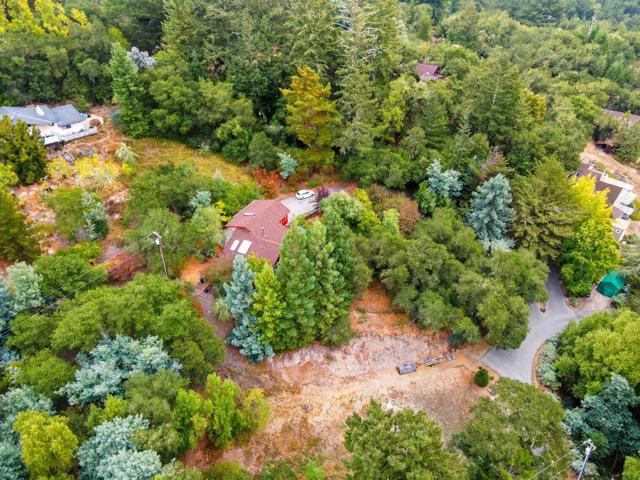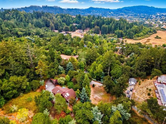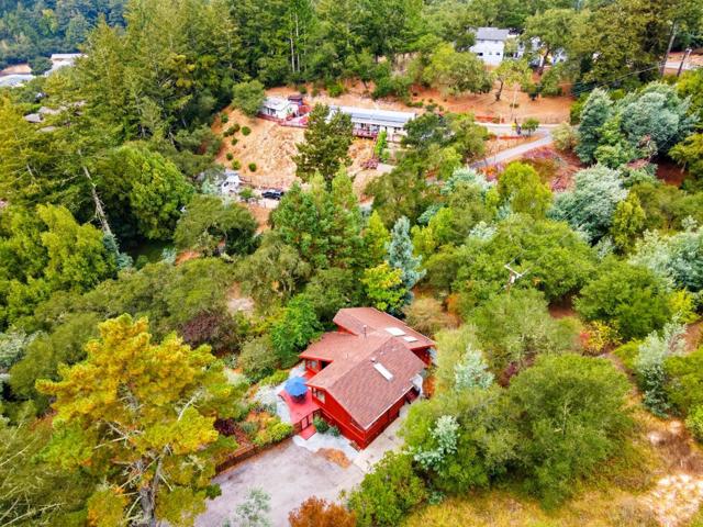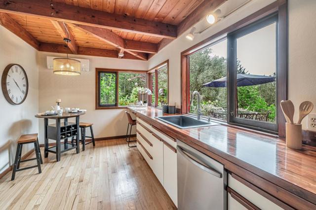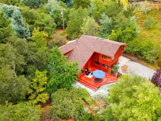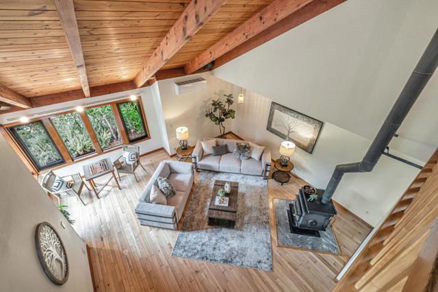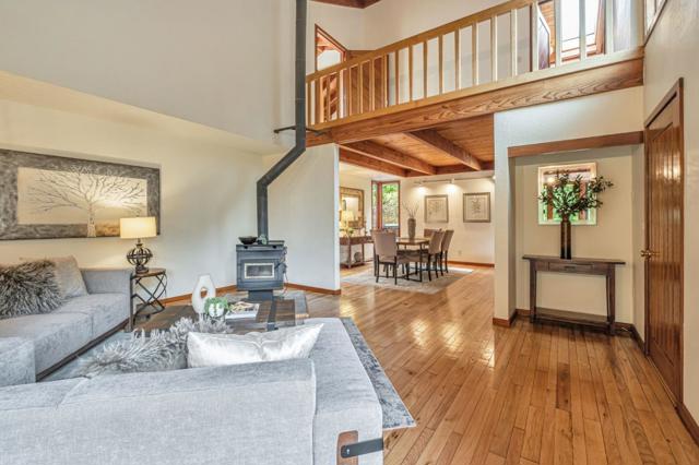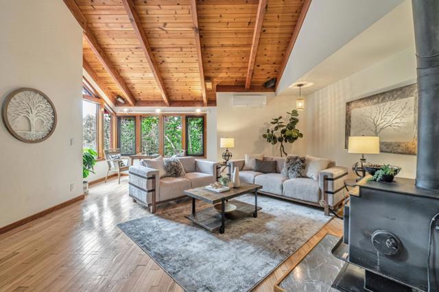 First time on market in 50+ years! Renovated Artistic Retreat w 2000+sf on 1+acre in one of Scotts Valleys best neighborhoods! The main level welcomes you with soaring open-beam ceilings, fresh interior paint, refinished wood floors, & abundant natural light. The living room with cozy wood stove flows seamlessly into the dining area & kitchen, featuring newer appliances, new butcher block counters, & a spacious pantry. Redwood doors & window trim add timeless charm throughout. The ground floor primary suite showcases a restored parquet floor with 500+ hand-crafted pieces! New marble-look subway tile floors in the hallway, laundry & bathroom with new vanity, lighting, & new tile tub surround. Efficient main floor mini-splits provide heat & a/c. A handcrafted staircase leads to the upper floor office & skylight, loft, two bedrooms, & a full bathroom with a hidden utility/storage room. Expansive windows frame serene views of Redwoods, Oaks, & Japanese maples. Outdoors, enjoy drought-tolerant gardens with Lavender, Sage, Bougainvillea, & fruit trees, plus a generous refinished deck for entertaining. New roof in 2024! Large detached workshop. Close to hiking, top rated schools, freeways. Just 6mins to Scotts Valley,15mins to Santa Cruz Beaches & 25mins to Silicon Valley. 1of a kind!