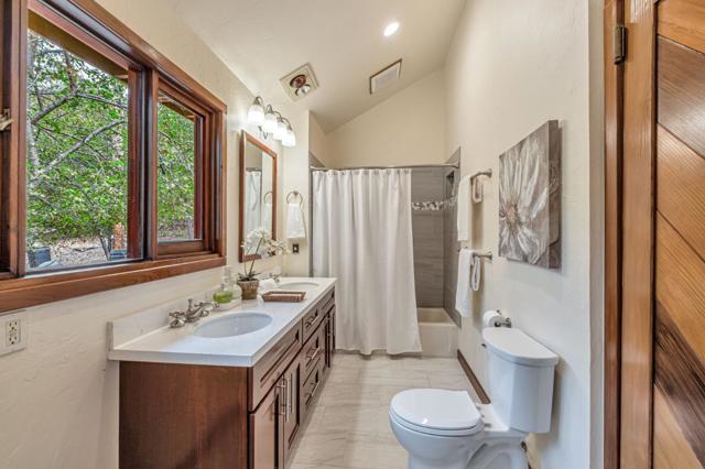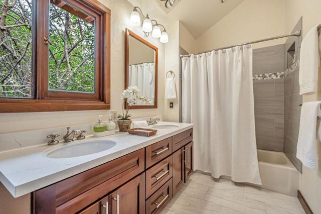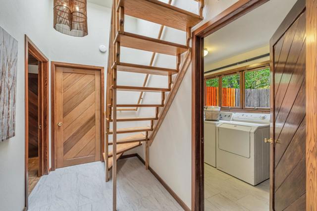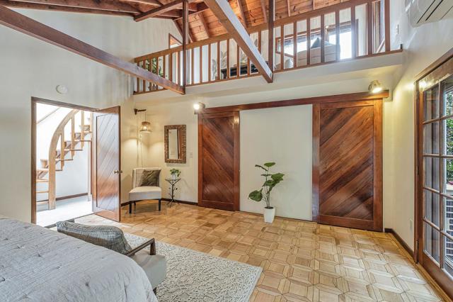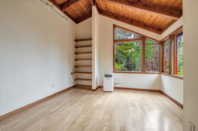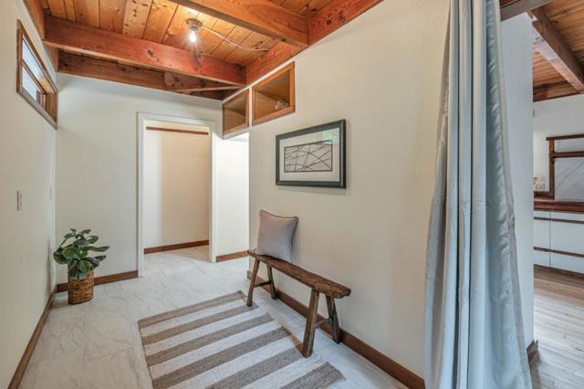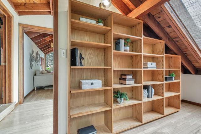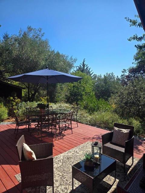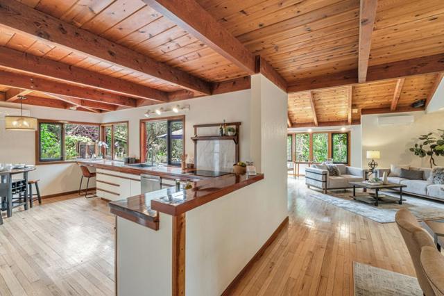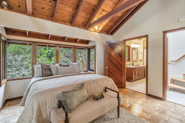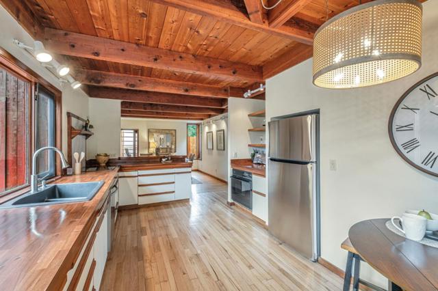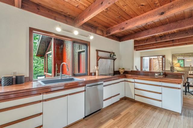 First time on market in 50+ years! Renovated Artistic Retreat w 2000+sf on 1+acre in one of Scotts Valleys best neighborhoods! The main level welcomes you with soaring open-beam ceilings, fresh interior paint, refinished wood floors, & abundant natural light. The living room with cozy wood stove flows seamlessly into the dining area & kitchen, featuring newer appliances, new butcher block counters, & a spacious pantry. Redwood doors & window trim add timeless charm throughout. The ground floor primary suite showcases a restored parquet floor with 500+ hand-crafted pieces! New marble-look subway tile floors in the hallway, laundry & bathroom with new vanity, lighting, & new tile tub surround. Efficient main floor mini-splits provide heat & a/c. A handcrafted staircase leads to the upper floor office & skylight, loft, two bedrooms, & a full bathroom with a hidden utility/storage room. Expansive windows frame serene views of Redwoods, Oaks, & Japanese maples. Outdoors, enjoy drought-tolerant gardens with Lavender, Sage, Bougainvillea, & fruit trees, plus a generous refinished deck for entertaining. New roof in 2024! Large detached workshop. Close to hiking, top rated schools, freeways. Just 6mins to Scotts Valley,15mins to Santa Cruz Beaches & 25mins to Silicon Valley. 1of a kind!