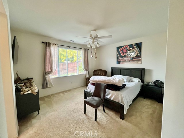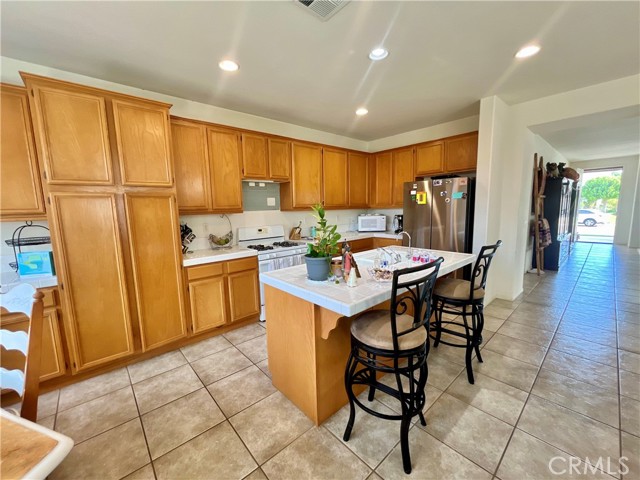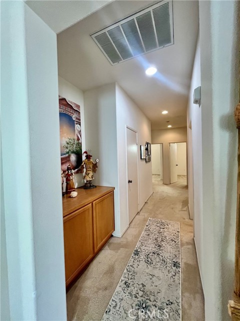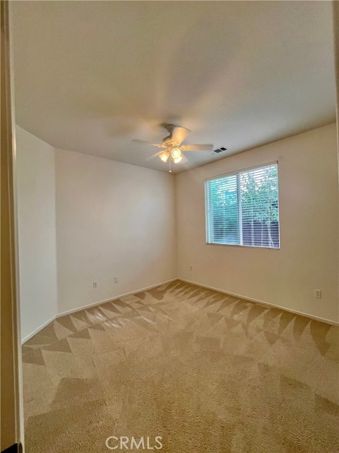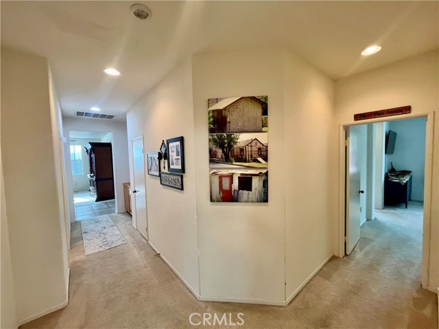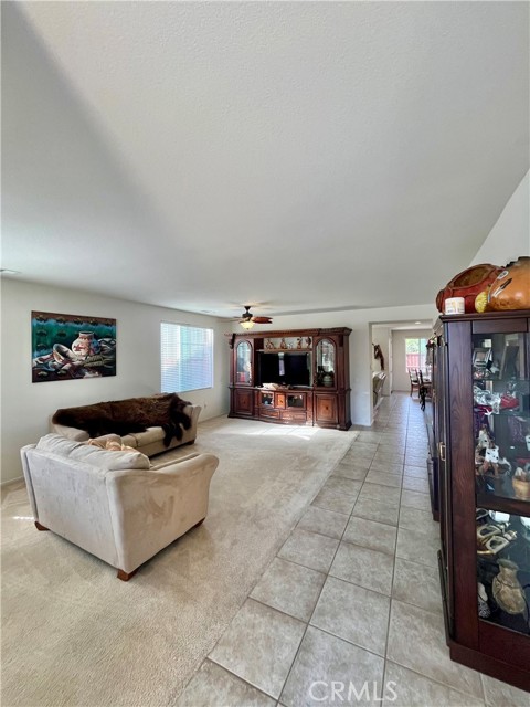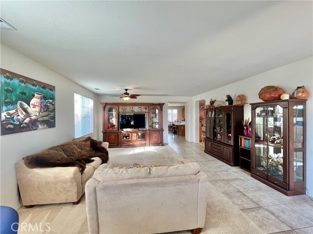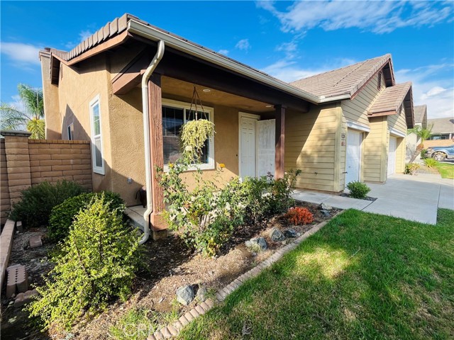 Welcome to 32228 Rosemary Street, a beautifully maintained single-story home in the desirable Morning Star Ranch community of French Valley. Perfectly situated on a quiet interior street, this residence blends comfort, natural light, and thoughtful design with easy access to Temecula Wine Country, Lake Skinner Recreation Area, and the I-15 / I-215 corridors. A wide front porch sets a welcoming tone for morning coffee or peaceful evenings. Inside, vaulted ceilings, tall doorways, and abundant windows create a bright, airy atmosphere across nearly 2,000 sq ft of single-level living. The front living room, currently arranged as a home office and formal sitting area, offers flexible space for entertaining or remote work. A central hallway leads to three spacious bedrooms, a full hall bath, generous linen storage, and a dedicated indoor laundry room. The private primary suite serves as a retreat, featuring dual vanities, soaking tub, separate shower, and a walk-in closet large enough to feel like a dressing room. At the heart of the home, an open-concept kitchen and family room invite gatherings with a center island, gas fireplace, and wide windows overlooking the backyard. Sliding doors open to a covered patio, perfect for dining, gardening, or simply unwinding outdoors. Additional highlights include a three-car garage with ample storage and solar panels with an assumable lien, providing energy efficiency and monthly savings. Thoughtfully designed and ideally located, this Morning Star Ranch home offers the ease of single-story living and the warmth of a community surrounded by natural beauty.