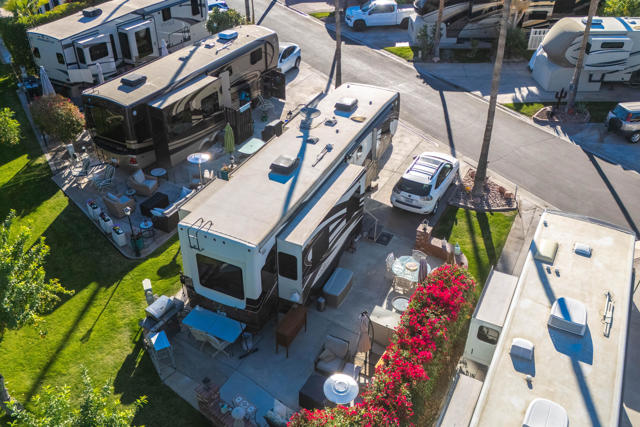 This serene orchard lot on the east side of the resort is a peaceful retreat. Mature hedging on the patio side provides added privacy, and the location is just a short distance from Satellite B. Included is a 2015 Mobile Suites RV, meticulously maintained and in fantastic condition. This package offers a blend of tranquility and convenience, perfect for enjoying the resort lifestyle. Outdoor Resorts Palm Springs is a Five Star RV Resort Community combining luxury with affordability. It is a guard gated resort that sits on 137 beautifully landscaped acres with 27 holes of executive golf, 10 tennis courts, 13 pickleball courts, 8 swimming pools, a fully equipped fitness center. beauty salon/barber shop, full-service restaurant. convenience store. 2 club houses, activities, special events and so much more.