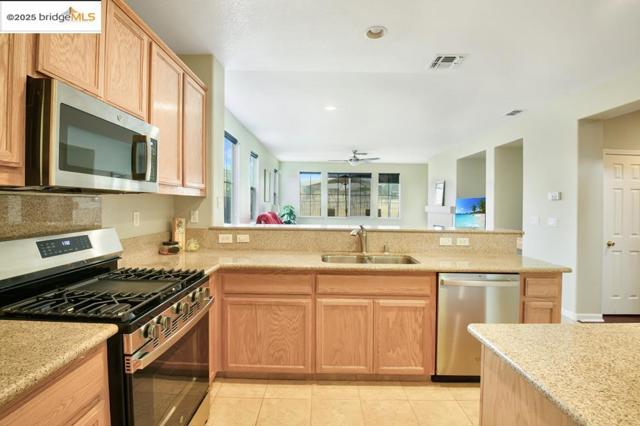Stunning and pristine home now available at Diablo Grande. This 2,685-square-foot residence features 4 Bedrooms and 3.5 bathrooms, boasting an open ceiling that invites dynamic natural light throughout. The multi-dimensional floor plan includes a family room and kitchen combination. The downstairs area offers 2 bedrooms and 1.5 bathrooms, making it ideal for multi-generational living. Upstairs, you will find 2 additional bedrooms including a primary bedroom including a en-suite bathroom featuring dual sinks, stall-shower, a soaking tub, and a spacious walk-in closet. Adding to its appeal, a bright loft overlooks the lower-level living area. This versatile space is perfect for a home office, an additional TV lounge, or a play area. Residents of Diablo Grande can also enjoy the gated community, scenic beauty of rolling hills and convenient access to hiking and bike trails, perfect for outdoor enthusiasts. This is a wonderful homeownership opportunity that you won't want to miss