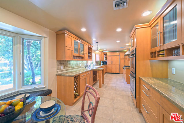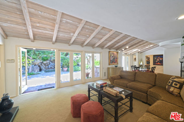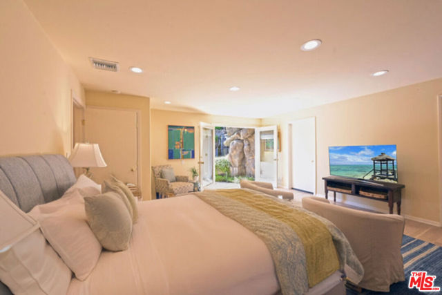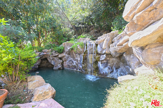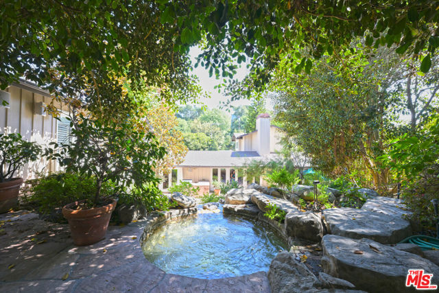 Prime Brentwood location! This spacious home offers a gourmet kitchen, abundant closets, excellent storage, a refrigerated wine closet plus the living room, dining room and office - all with French doors, open to a large patio & pool. The huge primary suite includes a private outdoor spa and balcony, while the luxurious bath features a jetted two-person tub and an exceptionally large shower. The resort-style backyard is perfect for entertaining with a lagoon pool and tranquil waterfall. Award-winning Kenter Canyon Elementary is just moments away. This home has it all, combining comfort, style, and convenience. Voluntary neighborhood association with optional $100/year dues supporting community quality and events. No mandatory HOA.