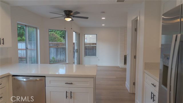 This delightful 4-bedroom, 2.5-bath home in the sought-after Northwood Village of Irvine is perfect for a family looking to enjoy a vibrant community. Boasting stunning curb appeal with beautifully landscaped grounds NEW windows, and a stone-accented walkway, the double entry doors lead to a freshly remodeled interior brimming with modern comforts. Luxury vinyl plank flooring runs throughout, while the cathedral ceilings in the foyer, staircase, and living room create a bright, airy ambiance. The newly designed kitchen features recessed lighting, contemporary cabinets, and elegant Quartz countertops, extending into a cozy breakfast nook ideal for casual dining and meal preparation. The family room, complete with a welcoming fireplace, opens to a spacious private backyard. Stylish vinyl plank stairs lead to four inviting bedrooms upstairs, with all bathrooms updated with new mirrors and light fixtures. A skylight in the master bathroom fills the space with natural light, elevating your mood. Enjoy community amenities such as a pool, spa, tennis courts, and playgrounds, all within walking distance. You’ll also benefit from a prime location near business centers, shopping, entertainment, dining, and easy freeway access, along with excellent award-winning schools for every grade level.