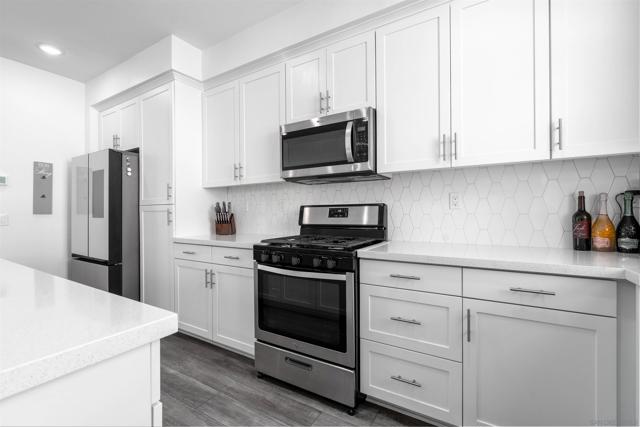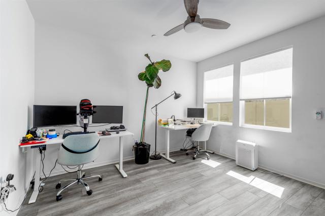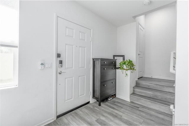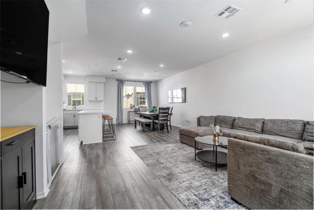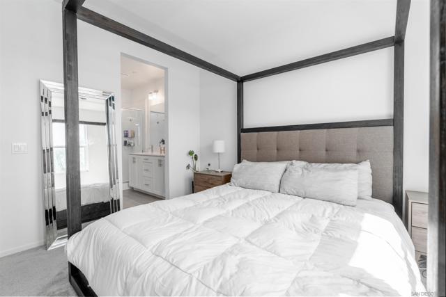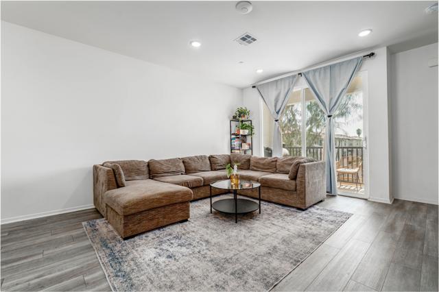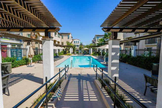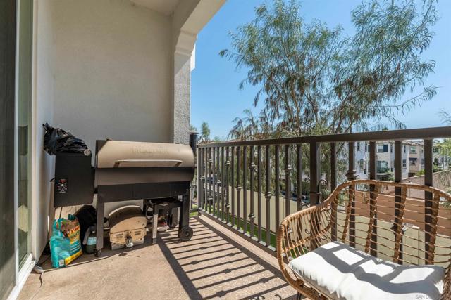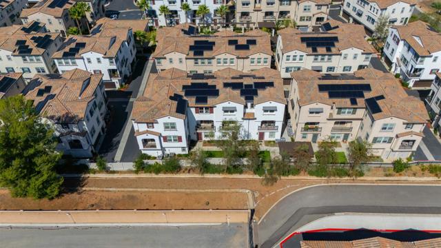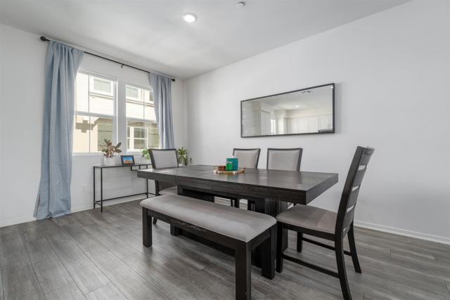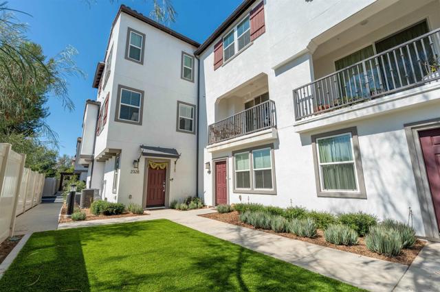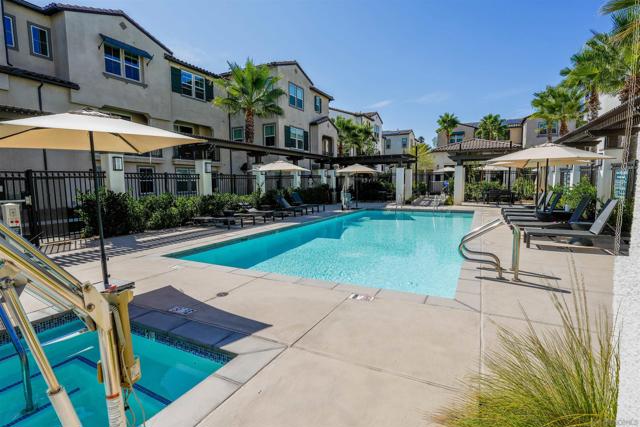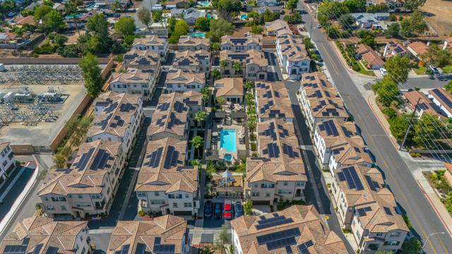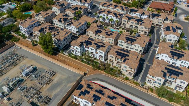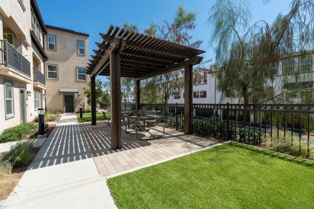 The LARGEST floor plan in this sought-after Escondido community, offering modern living across all levels and PAID OFF solar! The home features a versatile first-floor flex space, a spacious open-concept main living area, and a bright kitchen with a 5 burner stove, Smart refrigerator, and tiled backsplash. The primary suite includes an upgraded tiled shower and walk-in closet, while all bedrooms are equipped with ceiling fans for year-round comfort. Stylish upgrades include luxury vinyl plank flooring throughout the main living areas, tiled bathrooms, and a private deck off the living room. Energy efficiency is built in with a tankless water heater, Quick Cool fan system, and a 3.5kW solar system, complemented by smart home features such as app-controlled lighting, thermostats, and a garage door with integrated camera. Residents enjoy resort-style amenities including a sparkling pool and spa, fire fit, lounge area, multiple BBQs, a children's playground, and a shared outdoor patio with TV and seating. An indoor community gym is also planned. Perfectly situated at the quiet back end of the neighborhood, the home offers added privacy while still being close to everyday conveniences. Just off Interstate 15, you'll have quick access to stores, gas stations, and vibrant dining. This turnkey home combines comfort, innovation, and location -- ready for its next chapter.