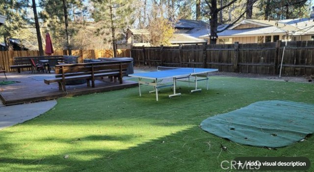 Spacious Home for long-term renter, fully fenced yard, pets ok. Mini-split a/c unit upstairs. LIVING ROOM: The downstairs living room fireplace, KITCHEN: Open with breakfast counter LAUNDRY: The laundry area is off the kitchen and has a full-size washer and dryer. FAMILY ROOM: This is on the second floor at the top of the stairs, fireplace. BEDROOM #1: This is the Master, located on the second floor off the game room. This bedroom opens up to a patio deck overlooking the yard. BATHROOM #1: Upstairs is a full bath with tub/shower combo, off the master bedroom. BEDROOM #2: This is downstairs with a armoire closet BEDROOM #3: This is downstairs. BATHROOM #2 Downstairs is a full bath with a tub/shower combo. BACKYARD: This cabin has a huge backyard that is fully fenced and dog-friendly. There is a deck with lots of built-in seating, horseshoe pit, a fire pit, and a hot tub. PARKING: The property has a large driveway with 3 cars.