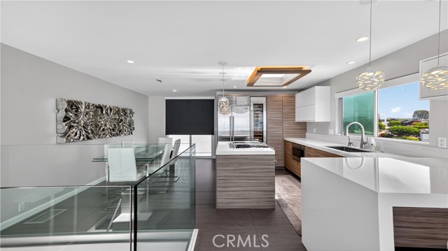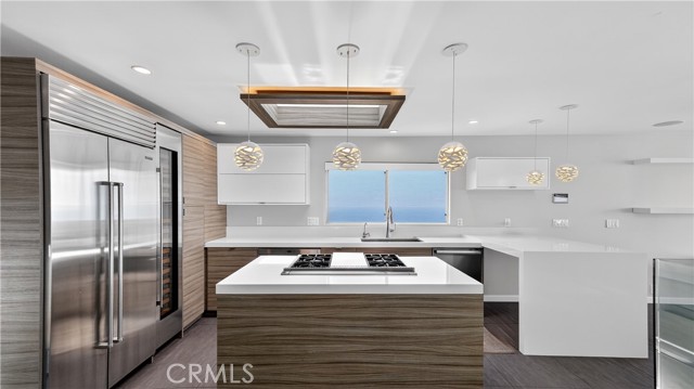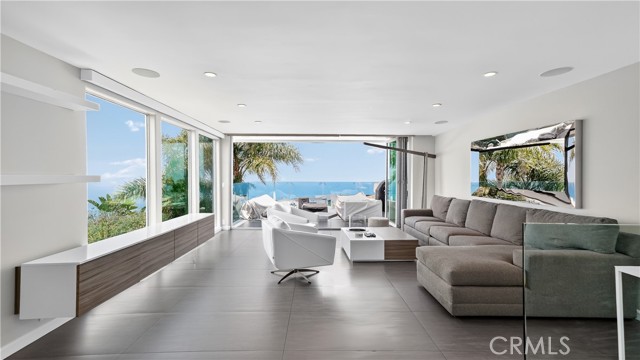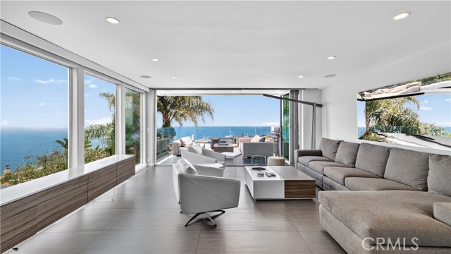 Fully furnished. Open to 6 months, month to month, short term- negotiable. Located at the end of a private cul-de-sac atop Arch Beach Heights, this striking split-level contemporary residence offers unobstructed 180-degree ocean and coastline views, with Catalina Island and twinkling city lights stretching beyond Laguna Beach, visible from nearly every room. Set on an exceptionally rare double-wide lot, the home spans nearly 2,350 square feet and features 4 bedrooms, 3.5 baths, a dedicated office (optional 4th bedroom), a private theater, and a custom wine room. Originally reimagined in 2007 by acclaimed designers Anders Lasater and Mark Singer, the home blends bold design with timeless quality. The spacious primary suite includes a custom-built closet system and an expansive spa-like bathroom complete with a steam shower, soaking tub, and a built-in TV for the ultimate retreat. Upstairs, the main living area boasts an open-concept layout with hardwood and stone flooring, a chef’s kitchen with stainless steel appliances—including a Bosch ultra-quiet dishwasher—cherry wood cabinetry, granite counters, skylights, a breakfast bar with a mini-fridge, and a center island cooktop. Sliding doors lead to both front and rear decks, seamlessly extending the living space outdoors. This exceptional property offers the rare combination of architectural sophistication, functional design, and breathtaking natural beauty. Just moments from world-class beaches, hiking trails, restaurants, and vibrant village life, this home is not only a peaceful retreat but also a gateway to the very best of coastal living. Whether you're entertaining guests or enjoying a quiet evening overlooking the Pacific, this one-of-a-kind residence delivers an unparalleled lifestyle experience.