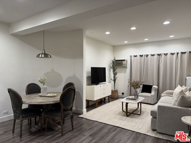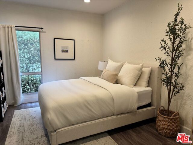 Welcome to a serene and stylish escape at 1440 Veteran Avenue, a boutique resort style condominium community nestled in the heart of Westwood. This beautifully updated second floor one bedroom residence offers a seamless blend of comfort, practicality, and elevated living. Step into an open concept layout with soaring nine foot ceilings and soft recessed lighting that set a calming tone throughout. The remodeled kitchen is both elegant and functional, featuring quartz countertops, sleek modern appliances, abundant white shaker cabinetry, a large apron sink, and a classic subway tile backsplash. The living and dining areas flow naturally onto a peaceful north facing balcony overlooking a quiet, tree lined walkway between buildings. Hardwood style vinyl plank flooring adds warmth and continuity throughout the home. The spacious bedroom offers a tranquil retreat, comfortably accommodating oversized beds such as a king or California king, and includes two generous closets. A thoughtfully renovated bathroom invites you to unwind with a deep soaking tub and shower combo, custom marble top vanity, and clean white subway tile walls. One assigned parking space in the gated garage and access to convenient bike storage rooms provide added ease. On-site electric vehicle charging stations are also available for your convenience. Beyond your front door, the building offers 24 hour security, digital package tracking, an on site manager, a fully renovated fitness center with Precor and Peloton equipment, a steam room, sauna, lounge, conference room, party space with catering kitchen, and lush grounds with koi ponds, waterfalls, a heated pool, and spa. Across the street, a sprawling park invites you to enjoy tennis and basketball courts, soccer fields, and a dog park. Located just minutes from UCLA, Westwood Village, and the upcoming Purple Line station, this exceptional home includes all utilities; electricity, water, and trash and offers an unmatched lifestyle of ease and convenience. Applicants must meet minimum income and credit score requirements and will undergo a credit, background, criminal, and eviction screening through our third party service, RentSpree.