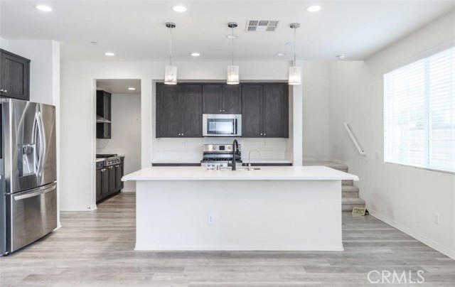 Discover modern living in this nearly new construction home, nestled within the highly desirable Spanish Trails community of Upland. Built in 2018, this thoughtfully designed residence offers a versatile floor plan to suit a variety of lifestyles. The main level is graced with durable laminate flooring and features a convenient downstairs bedroom and a full bathroom, perfect for guests or multigenerational living. The heart of the home is a gourmet kitchen, complete with ample cabinetry and granite countertops. A unique and practical feature is the separate wok kitchen, ingeniously designed to contain the aromas of cooking, ensuring the rest of the home remains fresh. Upstairs, you will find a serene retreat with three additional bedrooms and two full bathrooms, providing ample space for family and visitors. The convenience of an upstairs laundry room adds to the home's practical appeal. All bedrooms are comfortably carpeted, creating a cozy atmosphere. The community itself extends your living space with amenities such as a BBQ grill, picnic tables, a basketball court, and outdoor fitness equipment. The property’s prime location offers an abundance of recreational opportunities. Just across the street, Greenbelt Park unfolds with its playgrounds, baseball diamonds, picnic areas, and lush, tree-covered walking trails. This home provides easy access to a wide array of shopping, dining, and entertainment options, including the historic Claremont Packing House and the popular Victoria Gardens. Proximity to major transportation corridors, including the 210, 10, 15, and 57 freeways, ensures a convenient commute throughout the region.