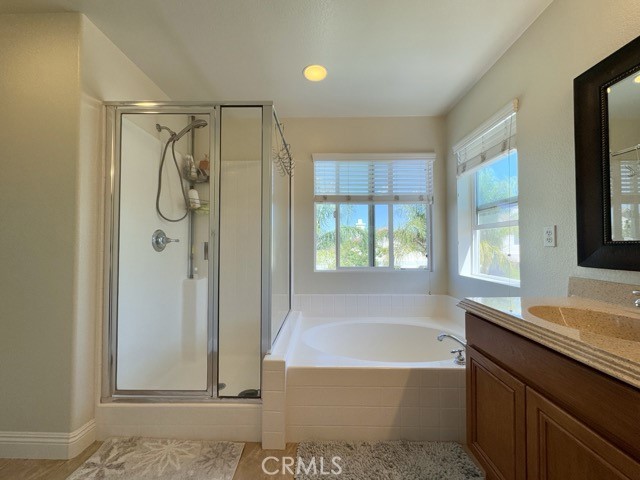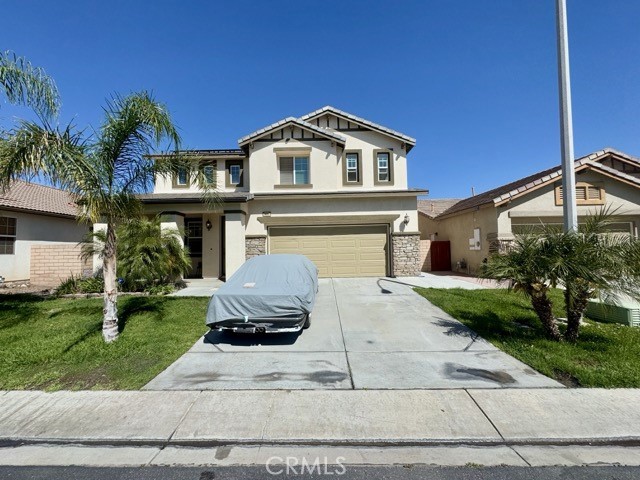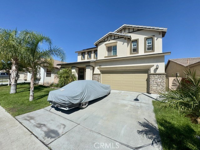 This upcoming 4 bedroom, 2.5 bathroom home with Solar is located in the highly desirable Tierra Shores gated community in Menifee and offers the perfect blend of spacious living and modern comfort. With wonderful curb appeal, the home features a three car tandem garage providing ample space. Inside, you’ll find soaring ceilings, laminate flooring, and an abundance of natural light that highlight the open-concept layout and create a warm, inviting atmosphere. The kitchen features oak cabinetry, granite countertops, stainless steel appliances and seamlessly opens to the family room, ideal for entertaining and everyday living with a cozy fireplace. All four bedrooms are located upstairs, each generously sized to accommodate a variety of needs. All 4 bedrooms will have the carpet replaced with band new laminate flooring prior to a tenant moving in. The primary suite stands out with its expansive layout and luxurious ensuite bathroom, which includes dual sinks, a soaking tub, separate shower, and a walk-in closet. Venture outside to a beautifully landscaped backyard with fresh mulch making maintenance a breeze and plenty of room to relax or entertain. The backyard also offers a firepit and fruit trees! As a resident of Tierra Shores, you’ll enjoy access to exceptional community amenities including a pool, clubhouse, playgrounds, and scenic Menifee Lakes. Conveniently situated near shopping, dining, schools, and entertainment, this home truly has it all!