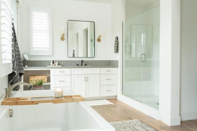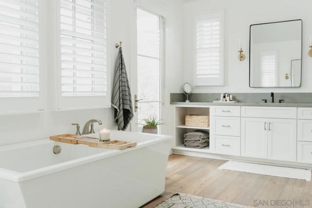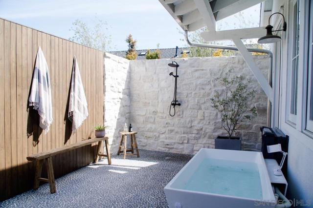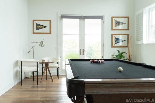 (Available 10/01/2024) Welcome to this luxurious coastal retreat, where the allure of the beach meets the comfort of home in an elegant, farmhouse oasis. Nestled just 1.5 miles away from the serene coastline, this incredible property boasts a sprawling main house plus detached guest suite offering all the amenities of a 5-star resort while ensuring every guest feels right at home. You'll be able to enjoy the laid-back surf town vibe, explore downtown Encinitas, and even visit Legoland up the coast with ease. The main house has a spacious single-story layout, featuring 4 bedrooms and 3.5 baths for ample accommodation. Step inside to discover an inviting open-concept design, where the kitchen, dining, and family room converge under vaulted ceilings bathed in natural light. Stainless steel appliances, ample storage, and a large kitchen island with barstool seating for 4 ensure every culinary endeavor is a delight. The adjacent round dining table is complete with seating for up to 8 guests. From the spacious living area, 26 ft custom La Cantina doors open up to the magical backyard. The expansive deck features an ambient fireplace and fire pit that beckons for cozy evenings under the stars. Enjoy alfresco dining for 6-7 people and whip up a feast on the built-in BBQ. A 42 ft long swimming pool with waterfall feature and baja ledge, along with a jacuzzi, is surrounded by the natural beauty of the large, open grass area. Revel in endless relaxation on the sunny lounge chairs. At the end of the day, retreat to the primary bedroom with its en-suite bathroom, complete with large soaking tub, glass-enclosed shower, and two separate vanities. Private access to an outdoor shower area adds a touch of luxury, boasting a cold plunge and cedar sauna. The second, primary bedroom boasts its own en-suite bathroom, while two additional guest bedrooms share a convenient jack and jill bathroom. The fourth bedroom offers versatility as a queen bedroom or a fully equipped home gym, featuring a Peloton, row machine, bench press, and more. Entertainment awaits in the game room with an 8 ft pool table, perfect for friendly competitions and laughter-filled evenings. Need to catch up on work? A dedicated home office with 3 workstations offers a tranquil space to focus. Additionally, the detached guest house offers a private sanctuary with a comfortable living area on the first floor and a queen bed upstairs, providing the perfect escape for couples or families. Added conveniences include air conditioning, washer and dryer, weekly housekeeping, 2 electric bikes, surfboards, boogie boards, and a paddleboard provided for your enjoyment. SLEEPING ACCOMMODATIONS (Maximum: 12 Guests) Bedroom 1 - 1 King bed Bedroom 2 - 1 Queen bed Bedroom 3 - 1 Queen bed Bedroom 4 - 1 Queen bed Bedroom 5 (Detached guest suite)- 1 Queen bed Shared Space - 1 Sofa sleeper Known for its surf culture and laid-back vibe, Encinitas offers a mix of businesses, surf shops, coffeehouses, and record stores. It is also recognized as the "Flower Capital of the World" due to its nurseries and gardens. The city boasts exceptional surfing spots like Cardiff Reef and Moonlight Beach.
