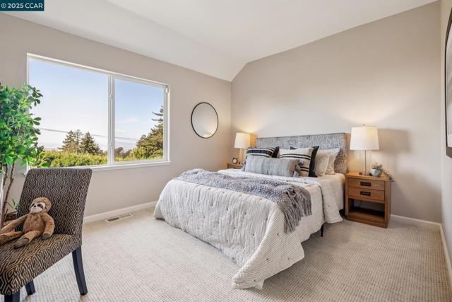 Stunning Custom Home with Panoramic Bay Views in El Cerrito Hills Welcome to this beautifully custom-built home, nestled atop the highly sought-after El Cerrito Hills. Designed by acclaimed architect David Ruffin and constructed in 1998, this residence sits at the end of a quiet cul-de-sac shared by only four homes, offering privacy, minimal traffic, and a serene hilltop retreat. Enjoy breathtaking views of the Bay, San Francisco, and iconic bridges, setting the stage for an exceptional living experience. This thoughtfully designed home boasts a seamless, flowing floor plan that effortlessly connects indoor and outdoor spaces, perfect for everyday living and entertaining. Key Features: 4 spacious bedrooms, including two primary suites 3.5 bathrooms Dedicated office and playroom/media room Soaring ceilings and a dramatic entryway Numerous decks and outdoor living spaces with spectacular vistas The chef’s kitchen is a showstopper, featuring handmade Shigato Ya cabinetry, natural quartzite countertops, a large center island, high-end, newer appliances, and a walk-in pantry conveniently located near the garage entrance for easy grocery unloading. The lower level includes 3 bedrooms, 2 full baths, the office, and a versatile playroom/media—ideal for families, guests, or multi-generat