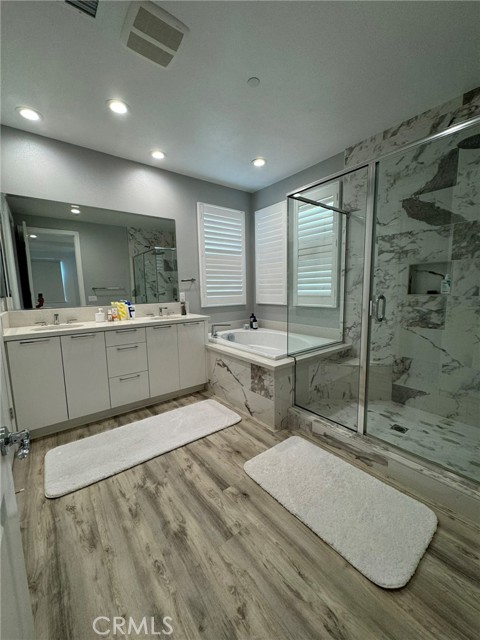 Welcome to this breathtaking newer construction home located at The Canyons, a 24/7 Guard Gated Community in Porter Ranch! This exceptional residence perfectly combines luxury and comfort! The main floor includes a versatile bedroom currently set up as an office, complete with built-in cabinetry and an adjacent bathroom. The open floor plan seamlessly connects the living, dining, and kitchen areas, making it an ideal space for entertaining. The gourmet kitchen features a large center island, high-end stainless steel appliances, and a walk-in pantry. Upstairs, you'll find the secondary bedrooms are generously sized! The upstairs laundry room is equipped with a sink, cabinets, and Whirlpool front loaders. At the end of the hallway, retreat to the luxurious primary suite, which boasts a spa-like bath with dual sinks, a soaking tub, a separate shower, and a custom closet accessible from the bathroom. Don’t miss this chance to lease this extraordinary home and experience the comfort, elegance, and exceptional amenities of The Canyons at Porter Ranch!