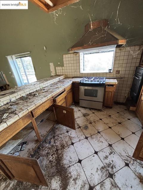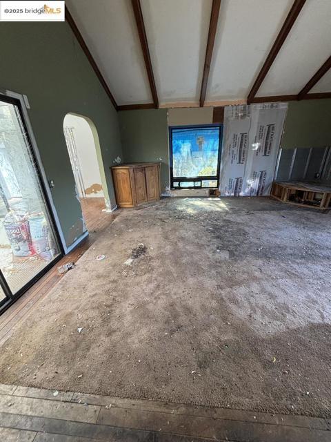 The home requires a full renovation and is being sold as-is. Systems, surfaces, and landscaping all need attention. With the land, creek setting, and existing footprint, the property provides a strong foundation for those ready to take on a comprehensive rehab. Built in 1986, it features high, beamed ceilings, a primary living room with pellet stove, a central atrium with skylights, wraparound back decks, plus a large garage, carport with RV access, and generous storage space below the main level. It needs the full overhaul—no sugarcoating.