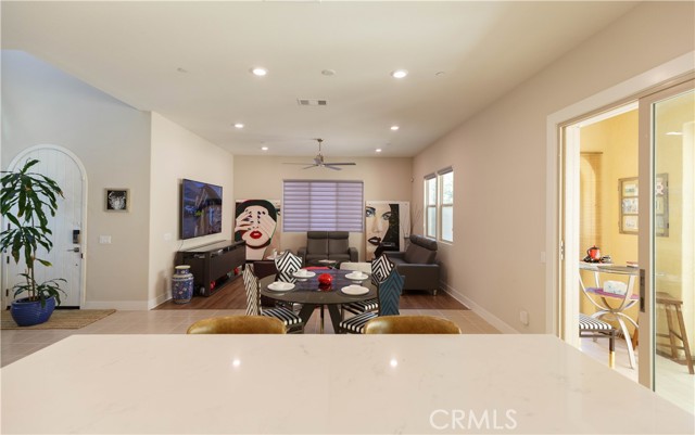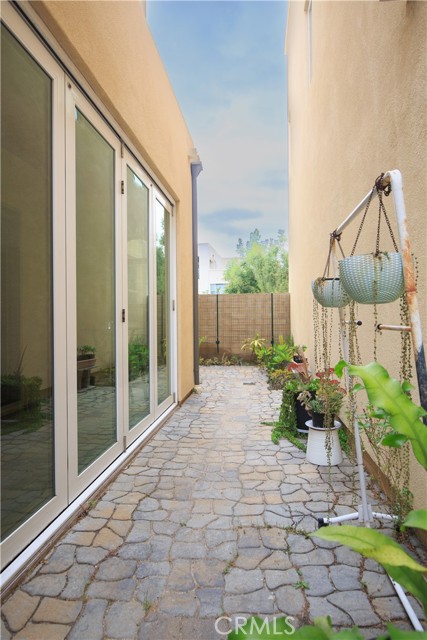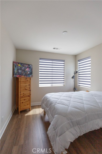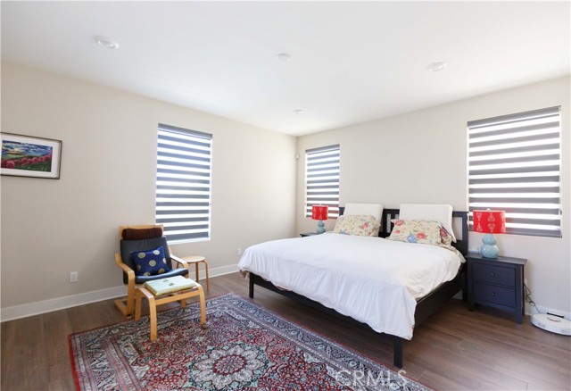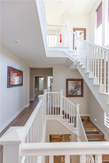 This contemporary detached residence offers innovative architectural design and modern living in the sought-after Parasol Park at Great Park Neighborhoods. This bright end-unit home features 4 bedrooms and 3 bathrooms across three spacious levels. The inviting great room flows seamlessly into the dining area, where sliding glass doors open to a private enclosed patio—ideal for a dedicated Chinese wok kitchen. The gourmet kitchen is appointed with white cabinetry, Quartz countertops, stainless steel appliances, recessed lighting, and a large center island perfect for meal preparation and casual gatherings. A main-level bedroom and bathroom provide a comfortable space for guests or in-laws. The primary suite upstairs features a walk-in closet, a private balcony, and a luxurious bathroom with dual sinks, a separate shower, and a soaking tub. Two additional bedrooms—one with its own balcony—share a well-appointed hallway bath. A conveniently located laundry room completes the second floor. The third floor features a spacious family/bonus room, ideal for a home office, playroom, or media lounge, which opens onto a generous rooftop patio offering panoramic neighborhood views. Additional highlights include engineered wood flooring, dual central A/C and heating with programmable thermostat, tankless water heater, solar, and dual-pane low-E windows for energy efficiency. A two-car garage is attached, providing direct access. Residents of Parasol Park enjoy a vibrant lifestyle with access to a 3.5-acre private oasis park, 5 community parks, multiple pools and spas, 25 tennis courts, basketball courts, and 3 clubhouses. Walking distance to award-winning Irvine Unified schools, and just minutes to Woodbury Shopping Center, Irvine Spectrum, FivePoint Amphitheater, John Wayne Airport, top hospitals, and convenient multiple freeway access.