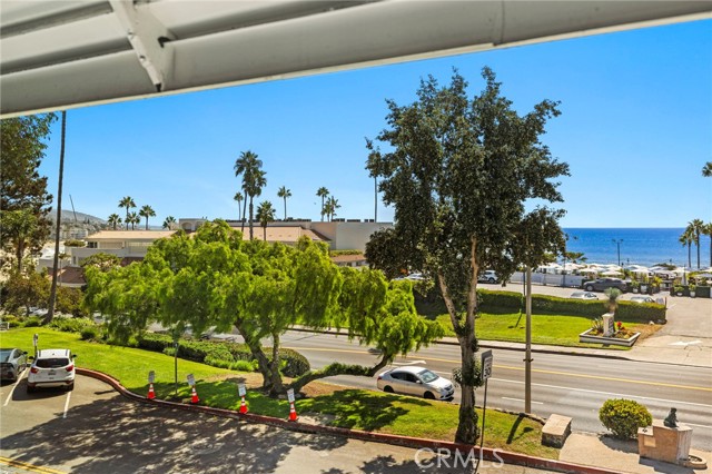 Ocean view, upper end unit condominium in North Laguna right across the street from the ocean front with views of the sand on Main Beach. In the heart of the downtown and North Laguna's vibrant areas, there's so much to do and see right outside your door! Remodeled and in excellent condition, this condo has not been lived in since the updating was completed. Refinished hardwood flooring throughout with an open, airy feel. Living room and the two bedrooms look out to the ocean view amd featire dual paned vinyl windows throughout. Kitchen updated with stainless steel range and built-in microwave. Kitchen and bathroom have new cabinetry with soft close doors, stainless hardware, plus new Quartz stone countertops and sinks. Remodeled bathroom features subway tiled shower with new glass door enclosure. Truly turnkey and ready for move in. Community laundry is conveniently located right near the unit. In a building of only 16 condos, this one boasts one of the best ocean views being on top and on the end! Heisler Park and gazebo, Laguna Art Museum, Las Brisas, Urth Café, trolley stops are all right across the street. Just yards to Main Beach, the central downtown streets of Ocean, Forest and Broadway with a multitude of restaurants, stores, night life and every day shopping conveniences for ease of living at the beach.