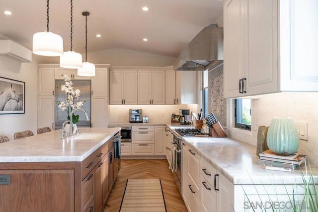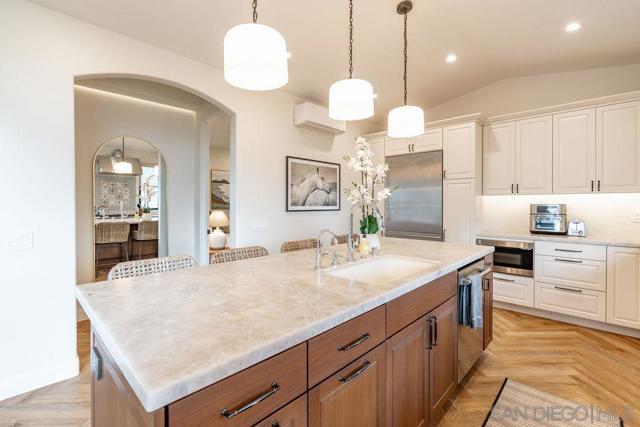 Fully furnished rental – Enchanting Encinitas Oceanview Casita Enjoy coastal living in this newly built 2BR/2.5BA Spanish-style detached casita with stunning ocean views. Located in the heart of Encinitas, just 10 minutes from Moonlight Beach, shops, and dining, this sunset sanctuary blends tranquility with sophistication. Enter through a gated private driveway to hardwood floors, high ceilings, and an airy, open layout. The living room and chef’s kitchen flow seamlessly, featuring stainless appliances, a large island with seating, and panoramic ocean vistas. Cozy up by the fireplace or relax on the comfortable sofa. The primary bedroom offers a queen bed with en-suite bath, dual vanity, and soaking tub; the second bedroom has a full daybed with trundle. Additional amenities include 2.5 elegantly finished bathrooms, fully paid solar, stacked washer/dryer, air conditioning, and small dogs allowed with approval. Experience the perfect combination of surf, sand, and sophisticated coastal living in Encinitas, known for its surf culture, nurseries, gardens, and iconic beaches. Maximum occupancy 5 guests. This is a furnished seasonal rental. Pricing varies by length of stay and seasonality. Published amounts are range estimates only. Final pricing, fees, and availability are subject to change until a fully executed lease agreement. Please inquire for exact quote and terms.