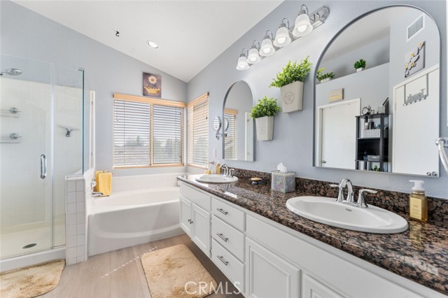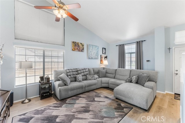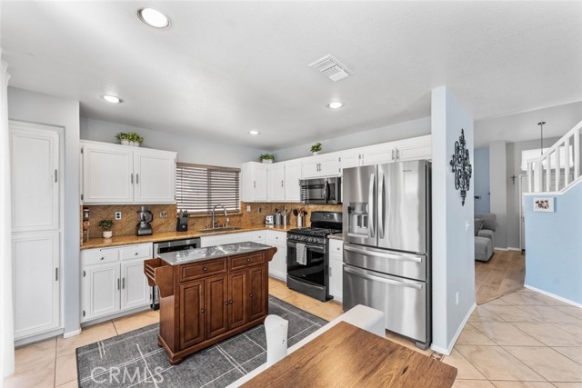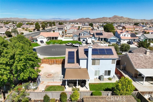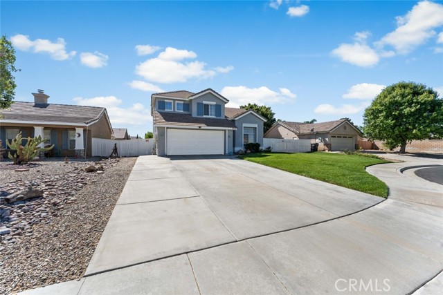 Welcome to 3448 Summer Breeze Avenue, a beautifully updated 4-bedroom, 3-baths single-family home located on a quiet cul-de-sac in a prime Rosamond neighborhood. Offering 1,831 sq ft of living space on a 6,534 sq ft lot, this home is move-in ready with thoughtful upgrades throughout. Once inside you'll find a freshly painted interior (Feb 2025) with waterproof vinyl plank flooring in the living room and primary bathroom, complemented by well-kept carpeting in the bedrooms. The first floor features a bedroom and a full bathroom downstairs. The kitchen has been refreshed with repainted cabinets, a brand-new stove, microwave, sink, and refinished banister and fireplace for a modern touch. The master suite features a brand-new shower door, updated lighting, and mirrors, with additional bathroom upgrades including new fixtures, lighting, and a medicine chest. Comfort is top of mind with a NEW AC, entire HVAC and duct system replaced in December 2024, and cleaned ground-floor ductwork. A refurbished patio door with a built-in dog door leads to the repainted backyard patio, perfect for relaxing or entertaining. Outside, the fencing has been reinforced for peace of mind. Outdoor enthusiasts that include an extra-long driveway with RV access, spacious enough to accommodate a 50-foot RV. Adding even more value, holiday-affixed Jellyfish permanent lights are installed along the eaves and included in the sale, offering year-round charm and convenience. Additional highlights include new fixtures throughout, new exterior paint, and recently replaced solar panels (11 panels) making the home both energy-efficient and cost-effective. With a spacious 2-car garage and a great location near schools, parks, and local amenities, this home offers the perfect blend of comfort, functionality, and style.