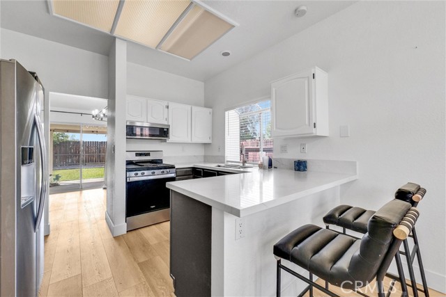 Charming Family Home nestled in "Sunnymead Ranch" community! This 3 Bedroom, 2 Bath home is ideally situated on the corner lot of a quiet cul-de-sac street. The living room features a cozy fireplace and adjoining dining area, perfect for gatherings. Kitchen area has a large greenhouse window that fills the space with natural light. Primary suite includes a walk-in closet, separate tub and shower, and direct access to the backyard through a sliding glass door. Enjoy outdoor living under the large covered patio - ideal for entertaining or relaxing. Additional features include attached 2 car garage with laundry hook-ups. Conveniently located near community amenities: lake, pool, spa, playground, bike trails, shopping, schools, and easy freeway access.