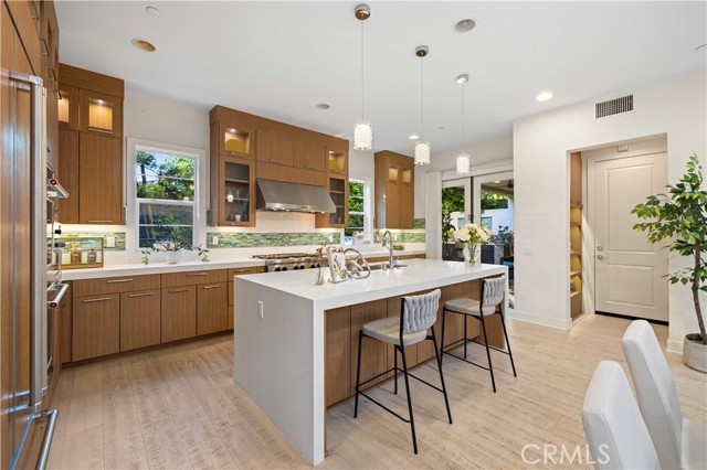 Located in the gated community of Parkside, this former Toll Brothers model home offers three levels of stylish living with high ceilings, hardwood floors, and an open floor plan. The gourmet kitchen features built-in appliances, full-height designer cabinets, a large island, and wine storage, flowing seamlessly into the great room and out to a private courtyard with a California room, ceiling fans, spa pool with water feature, and built-in BBQ. All four bedrooms are located on the second floor, including a spacious primary suite with a luxurious bath, oversized shower, dual vanities, soaking tub, and walk-in closet. A large entertainment room with a bar, its own A/C, and outdoor deck occupies the third floor. Community amenities include a clubhouse with pool, spas, BBQ area, dog park, and a large sports park nearby. Conveniently located with easy access to the 5 and 241 freeways, Foothill Ranch Town Centre, and award-winning schools. Fully furnished.