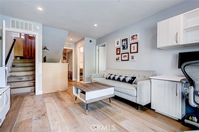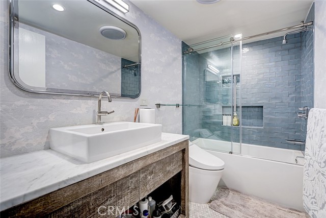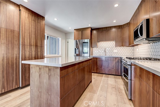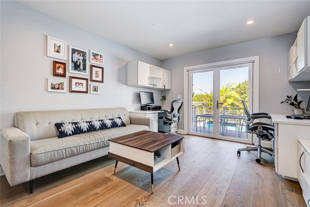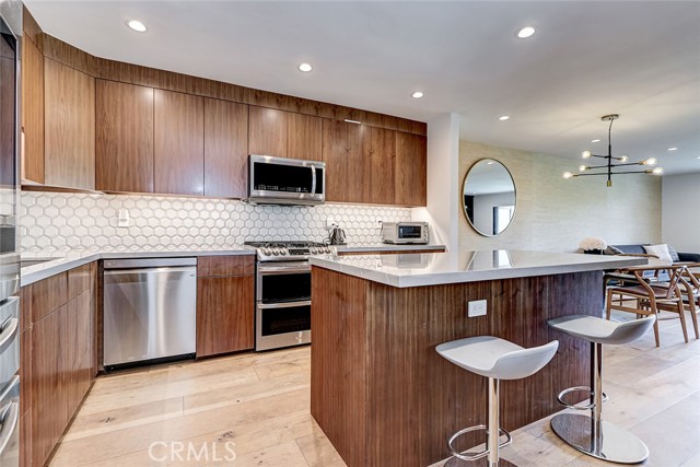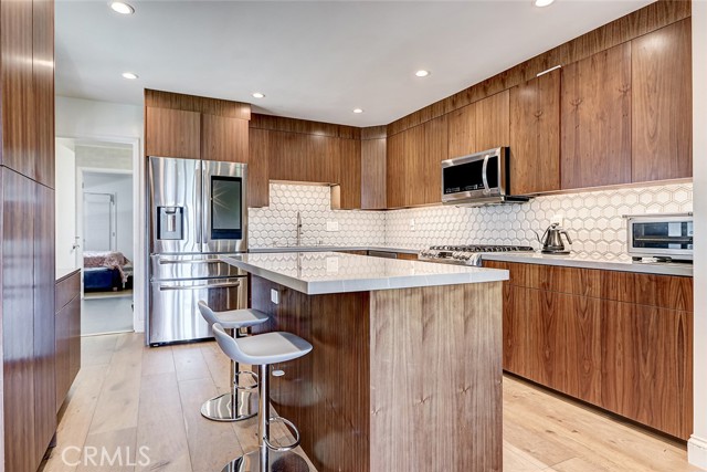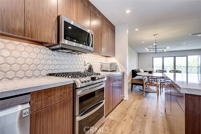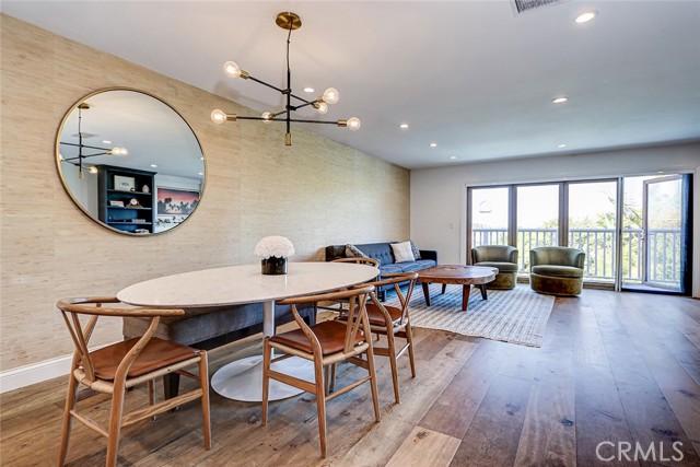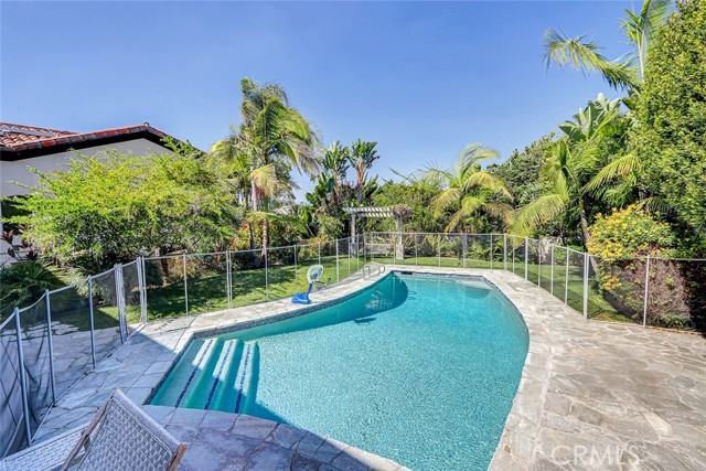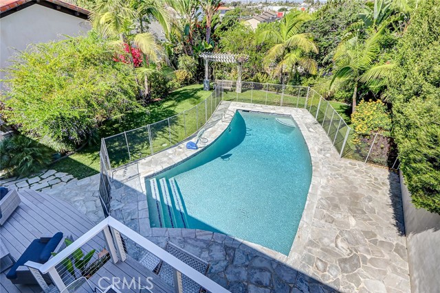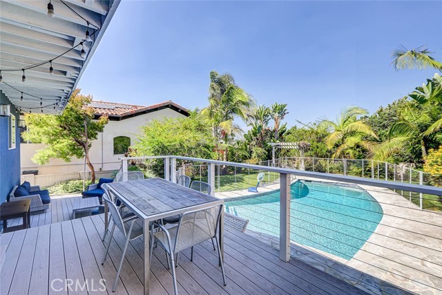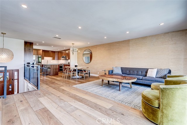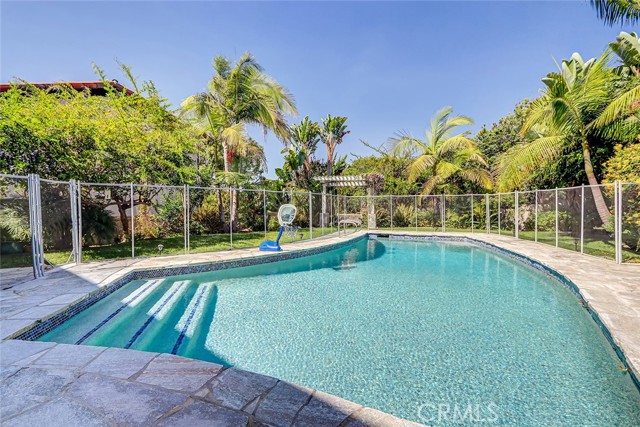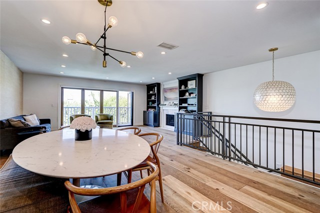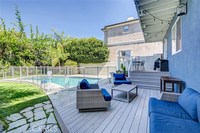 Set in a quiet, desirable area of East Manhattan Beach, this beautifully remodeled 3-bedroom, 3-bath home offers modern style, thoughtful design, and relaxed coastal living. Upstairs, an open-concept layout blends the kitchen, dining, and living areas, creating a bright and inviting space perfect for everyday living and entertaining. The kitchen features sleek cabinetry, a large center island with breakfast bar seating, quartz counters, geometric backsplash, and double ovens — all overlooking the dining area with stylish lighting and warm wood flooring throughout. The living room offers built-in cabinetry, fireplace, and a wall of sliding glass doors that open to a balcony with views of the lush backyard — a perfect spot to enjoy morning coffee or evening sunsets. The primary suite, located on the main level, feels like a retreat with its spa-inspired ensuite bath showcasing dual vanities, floating cabinetry, a soaking tub, frameless glass shower, and designer tile finishes. Downstairs you’ll find two additional bedrooms, a spacious bonus area ideal as a family room, home office, or kids’ hangout, plus a dedicated laundry area. One bedroom enjoys a private ensuite bath, while the other has access to a beautifully updated hall bath featuring designer wallpaper and modern tile work. Step outside to a serene backyard oasis with a sparkling pool, removable safety fence, sun deck, and lush tropical landscaping — perfect for outdoor dining, lounging, and entertaining year-round. Additional highlights include wide-plank hardwood floors, recessed lighting, custom window treatments, newer windows and doors, and an enclosed 2-car garage with a Tesla charger. Located on a quiet street just minutes from award-winning Manhattan Beach schools, parks, dining, and the beach, this home truly combines comfort, convenience, and California coastal living at its best!