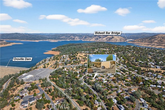 Welcome to the Kelly Ridge Community! Just minutes from Bidwell full-service marina and Oroville Dam. This home is ready for a new owner. The 1,680 square foot home offers a large living room and separate family room! Newer 2022 Ac unit, upgraded dual pane windows, luxury plank flooring throughout, newer roof, updated interior and exterior paint, primary bath vanities, updated shower/tub in both bathrooms. This home has a private setting with the lot to the south has no home. The kitchen has vaulted ceilings, built in propane range, dishwasher, built in oven, pantry, tons of cabinets, stainless sink and breakfast nook area. The living room off the double door entry has vaulted ceilings, private views and transom windows above the picture windows. Off the huge laundry room is a second living room with built in bookcase. The primary bathroom has 2 vanities, tub/shower combination and linen cabinet. The guest bath also offers a tub/shower combination. Off the kitchen is a concrete patio measuring 13'X35'. The covered carport measures 10'X46'. The detached two car garage has keyless entry, window and back man door entrance. This home is move in ready! Enjoy all Lake Oroville and the surrounding foothills has to offer.