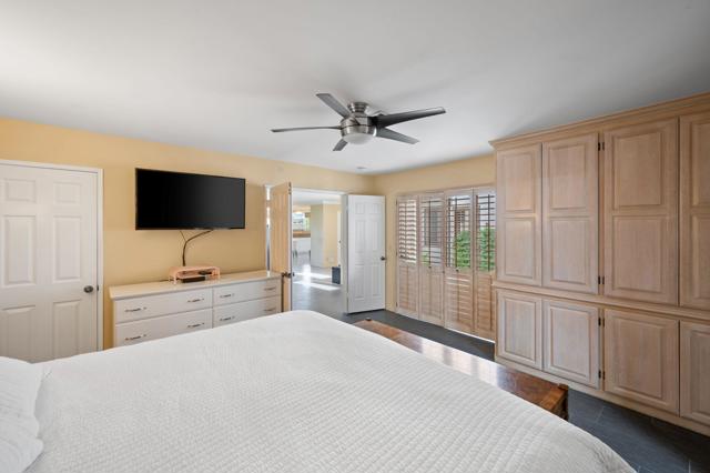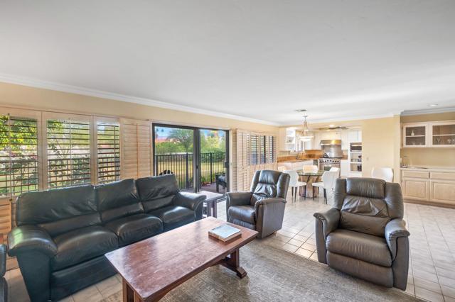 Welcome to this move-in ready, best valued condo home in the Desert! This spacious 2 bed, 2 bath, plus versatile office/den area home offers a perfect blend of comfort and convenience. The open floor plan spans a total of 1818 square feet with tile flooring throughout and includes split bedrooms offering privacy. The master bedroom features built-in cabinets and a private on suite bathroom, large soaking tub, and separate shower. Enjoy the cozy family room with a stone fireplace and built-in entertainment cabinet. The gourmet kitchen features granite countertops, stainless steel KitchenAid appliances, and a 6-burner gas stove. Step onto your covered, gated patio with misters, spanning the length of the home, overlooking the large, community grass backyard where you can enjoy your morning coffee, outdoor dining, or relaxation. Take a stroll across the cul-de-sac to the community pool and spa and stop to pick the community lemons, grapefruits, and oranges. Conveniently located in the prestigious Bermuda Dunes Country Club, offering optional golf and social memberships and located in IID Electric District (lower electricity costs). HOA includes cable/internet, water, septic, landscaping, roof, and exterior painting (completed in 2022). Don't let the Desert's best valued condo pass you by!