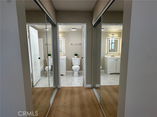 Welcome to 1052 S Mariposa Ave #305 — a beautifully updated 2-bedroom, 2-bath residence perfectly situated in the vibrant heart of Koreatown. This modern unit offers approximately 850 sq ft of thoughtfully designed living space featuring an open-concept layout, stylish laminate flooring, and abundant natural light throughout. Enjoy a sleek kitchen equipped with quartz countertops, shaker-style cabinets, and stainless steel appliances, seamlessly flowing into a bright living area that opens to a private balcony — ideal for relaxing or entertaining. The primary suite includes its own balcony, generous closet space, and a private ensuite bath. The well-maintained building provides controlled access, a community laundry area, and an inviting central courtyard. Experience comfort and city living at its best — schedule your tour today and make this Koreatown gem your next home!