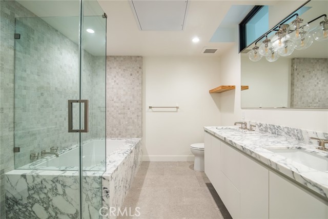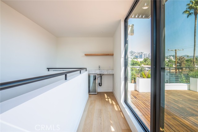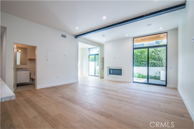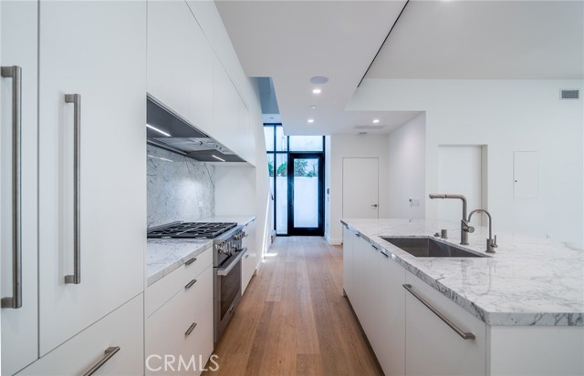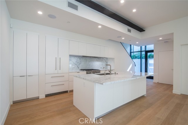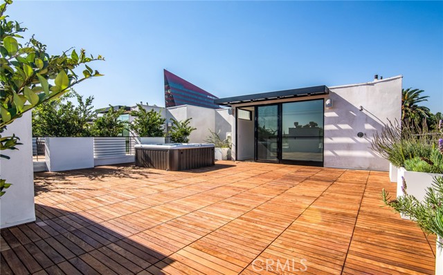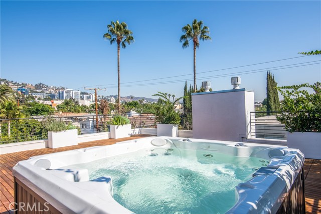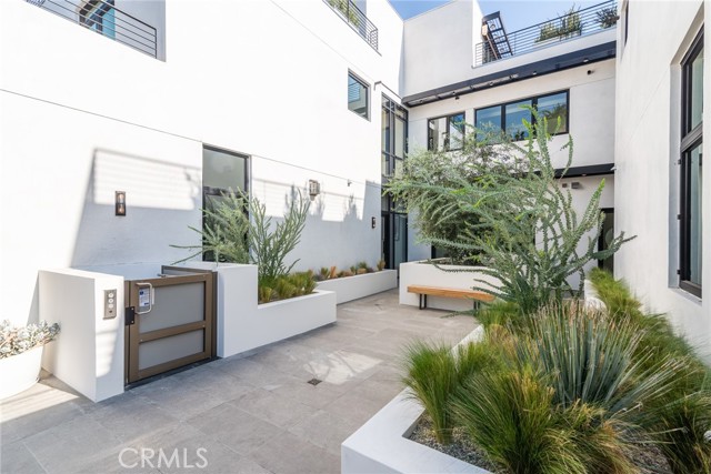 Exquisite and luxury residence in West Hollywoods coveted Melrose District, adjacent to Pacific Design Center, Cedar-Sinai Hospital with the convenience of the Beverly Hills and West Hollywood life styles. The brand new townhouse was thoughtfully designed for sophisticated living, featuring 3-bed, 3-bath, direct entry and expansive outdoor entertainment space. Charming floor plan designed with an airy, open-plan great room, expansive window walls, stunning master suite with balcony and walk-in closet, bonus room on the subterrean level (can be used as a yoga/exercise/gym, or an entertainment room), and the private 800 SF rooftop terrace with hot tub and sweeping views of Hollywood Hills and Pacific Design Center. Custom-design details include Italian cabinetry, marble countertops, french oak flooring, and Miele appliances. Residence boasts built-in speakers throughout, large bonus room, laundry room and two side-by-side parking spaces equipped with electric charging. Surrounded by exquisitely landscaped private gardens and located moments from renowned shopping, dining and nightlife, and the Sunset Strip. This Residence Unit is with its own private, separate side gate entry, and with a modern designed, serene and private backyard. Welcome to the Best Area in West Hollywood!