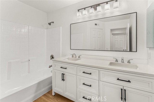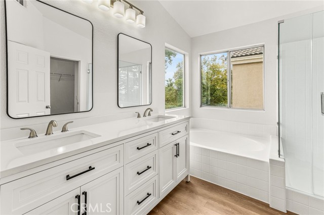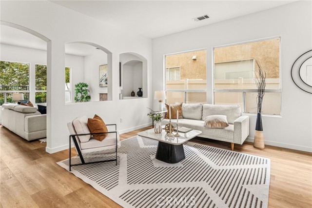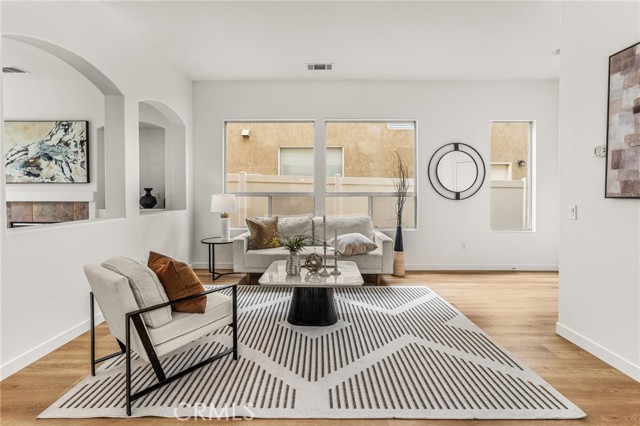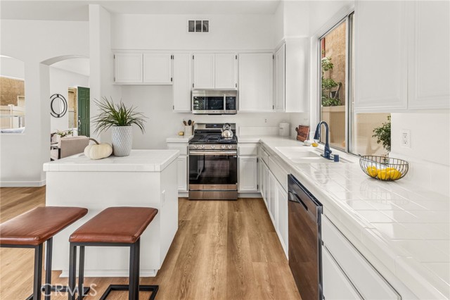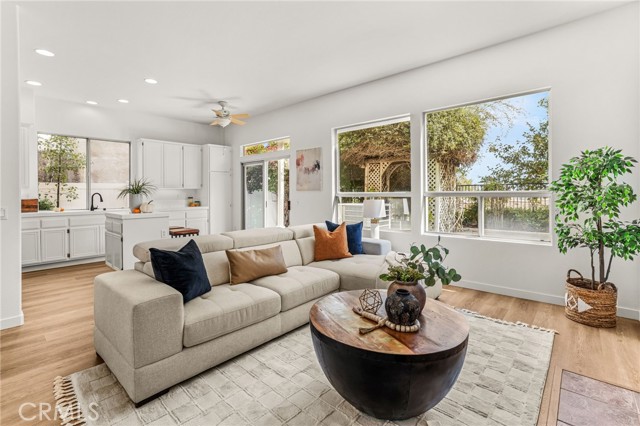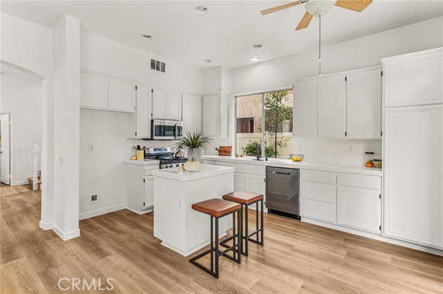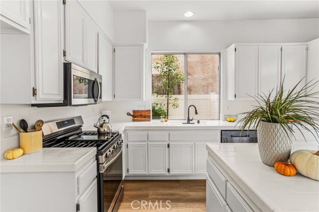 Light-filled, beautifully updated home in desirable La Paloma/Corona Ranch — move-in ready and ideally positioned near top schools, parks, shopping and easy 91/15 freeway access. This two-story residence offers 4 bedrooms and 2.5 baths with soaring vaulted ceilings and abundant natural light throughout. The remodeled downstairs features beautiful wide plank LVP flooring and brand-new kitchen appliances — an ideal layout for everyday living and entertaining. Upstairs the spacious primary suite is a bright retreat with vaulted ceilings and deck with mountain views, a generous walk-in closet and an en-suite bath with dual vanities, separate tub and tiled shower. Three additional bedrooms share the hall bathroom; all have fresh paint and beautiful wide plank LVP flooring. Convenience touches include upstairs seperate large laundry room and direct interior access from the 2-car garage. Outside, the private, gated backyard and patio offer plenty of room for family, pets and outdoor entertaining. Community amenities are just across the way — pool, spa and BBQ/entertaining areas — adding lifestyle value and true California living. Centrally located to Corona-Norco schools, parks, Costco, grocery and dining, this home combines modern updates with neighborhood charm.