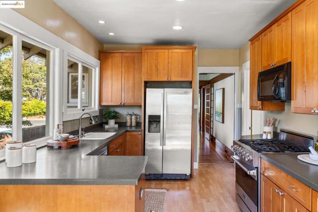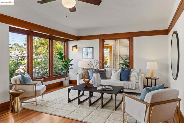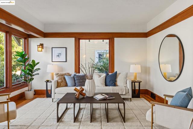 Gorgeous hidden Craftsman oasis in the heart of Temescal just moments from neighborhood favorites. Greenery & patios surround the home—perfect for morning coffee, gardening and entertaining. An enclosed foyer welcomes you into a light-filled main level with big windows and warm wood detailing throughout. Spacious living spaces flow into each other and lead into the kitchen with high-end Viking appliances, where two sets of glass doors connect seamlessly to the deck and beyond. Two spacious bedrooms and two full bathrooms are complemented by a finished attic that can be used as a play- or reading room. With its own external entrance, the non-conforming basement offers flexible space for guests or home office and has its own full bath. Spacious detached studio with full bath expands for unlimited options. With planter beds and a generous parking pad, this home balances tranquility with convenience in a vibrant neighborhood.