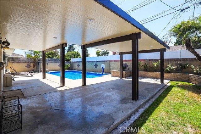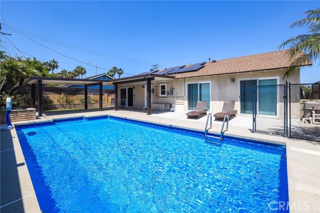 Welcome to your new home in the heart of Huntington Beach! This stunning 4-bedroom, 2-bathroom residence is nestled in a desirable cul-de-sac location, offering a perfect blend of comfort and convenience. The home boasts a range of amenities including a refreshing pool, air conditioning, and solar power for energy efficiency. The interior features a mix of laminate and tile flooring, creating a modern and stylish aesthetic. A cozy fireplace adds a touch of warmth and charm, while washer/dryer hook-ups ensure laundry days are a breeze. Central heating and dual pane windows provide year-round comfort. Step outside to a covered patio with lighting, perfect for evening relaxation or entertaining guests. A spacious two-car garage offers ample storage and parking space. Please note, the pool is not heated. This home truly has it all, offering a lifestyle of ease and sophistication in a prime location.