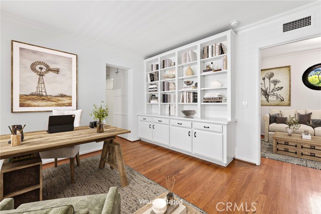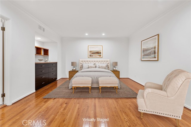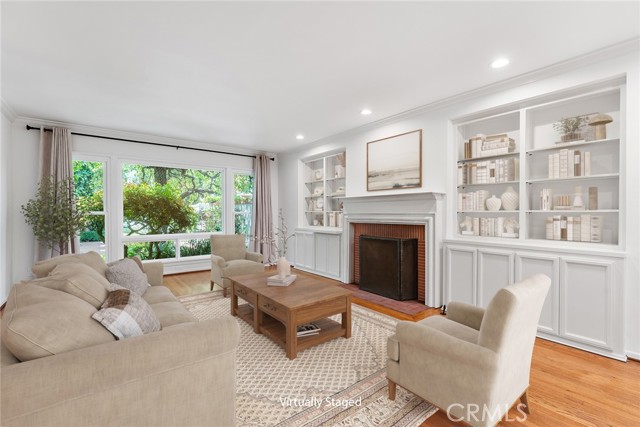 CAN YOU BELIEVE IT? STUNNING TOWNHOME IN WESTWOOD! That’s right - one of only three homes in an exclusive, charming setting that feels like a hidden gem in the heart of the city. Enter through a gated brick courtyard garden shared by just three residences, and discover this stunning two-story townhome offering 2,745 sq. ft., 3 bedrooms, and 3.5 baths - all bathed in natural light and featuring original oak flooring throughout. To the left of the entry, you’ll find a spacious living room with front facing windows, fireplace, and custom built-in bookshelves and cabinetry. To the right, a large great room offers expansive dining space, a second fireplace, and massive garden windows with French doors that open to the private outdoor patio. The gourmet kitchen is a chef’s dream, featuring a Wolf range, sunny breakfast nook, and ample cabinetry - seriously, storage for days! Upstairs, all three bedrooms await: The primary suite is a luxurious retreat with custom built-ins, a full bath, dressing area, and French doors that open to a Juliet balcony. The second bedroom, also ensuite, offers mirrored closets and beautiful natural light. The third bedroom, ideal as a guest room or home office includes its own ensuite bath, built-in desk, bookshelves, and closet. The upstairs laundry area includes an attached sewing or crafting room, offering even more functional space. Out back, the private garden patio is perfect for entertaining or quiet relaxation. And the location? Unbeatable - Just a short stroll to UCLA, Westwood Village, shops, dining, and more. You truly have to see this one to believe it. *Some photos have been virtually staged.