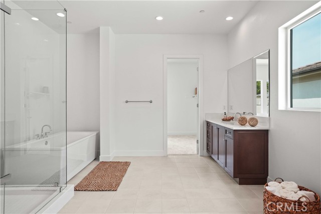 Introducing a stunning brand new construction home located in the exclusive gated community of Verona Estates in Chatsworth. This exquisite residence showcases 5 bedrooms and 6 bathrooms, situated on a generous 11,868 sq ft lot with an impressive 5,754 sq ft of refined living space. Upon entry, You'll be greeted by a stunning double-sided floating staircase and soaring ceilings that sets the tone for modern luxury and architectural elegance. The spacious living area features a sleek linear fireplace and is flooded with natural light during the day, while recessed lighting provides an ambient glow in the evenings.The bright and spacious living room features sliding glass doors that open to the backyard, creating seamless indoor-outdoor. The chef’s kitchen is a true showstopper, boasting an oversized quartz island, Sub-Zero refrigerator, Wolf appliances, walk-in pantry and custom soft-close cabinetry, perfect for hosting and gatherings in style. The main-level primary suite is a private retreat, complete with dual sinks, a luxurious soaking tub, and a generously sized walk-in closet. The upstairs primary suite offers breathtaking views, along with a spa-inspired bathroom featuring a spacious walk-in shower with dual shower heads, double sinks, a separate soaking tub, and a generously built-out walk-in closet. All bedrooms are en-suite, offering ultimate privacy and comfort for every member of the household. The home features a spacious loft, ideal for a private office, media room, or additional living space, Additional highlights include a fully paid-off solar system, Energy Star-rated efficiency, dual-pane windows. Verona Estates consists of only 37 homes, ideally situated near the new Porter Ranch Vineyards shopping center, upscale dining, and a newly developed community park. This exceptional home combines modern elegance, premium finishes, and an unbeatable location.