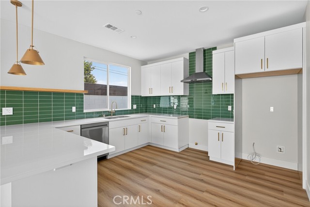 Brand new single story 3 bedroom, 2 bath back house in Whittier! This modern home has a spacious living room with high ceilings and recessed lighting, new kitchen with quartz counters, tile backsplash, stainless steel vent hood & dishwasher, and a primary bedroom with its own bathroom & walk in closet. The home has new luxury vinyl tile flooring through out, new central air and heat, new windows and sliding door, well insulated walls, solar panels (electricity bill will be low!) and an individual laundry room.