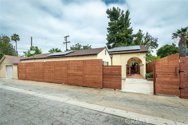 Welcome home to a Hacienda-style, unique home in a wonderful Sherman Oaks neighborhood. This wonderful home offers 1,292 sq. ft. with 3 bedrooms and 2.5 bathrooms, featuring romantic covered front and side patios with archways. A new stained wooden fence offers a serene lifestyle. Hardwood and laminated wood floors are throughout the house, featuring a central AC/heating system and a well-designed, open-concept floor plan with a high ceiling in the kitchen area. A lovely wood fireplace is in the living room. A washer and dryer are provided and conveniently located in the living room for easy access, and Stainless steel appliances, including a refrigerator, are provided. The property features a detached one-car garage and an additional parking space within the gated area, along with two large storage spaces offering ample room to store all your belongings. Additionally, the house features solar panels for reduced utility costs. A cozy backyard, surrounded by a beautiful walnut tree, invites family gatherings. Close to transportation, shopping, restaurants, and the Award-winning Chandler Elementary School. High quality yet very reasonable price. Possible Move-in date will be Nov. 5th, 2025.