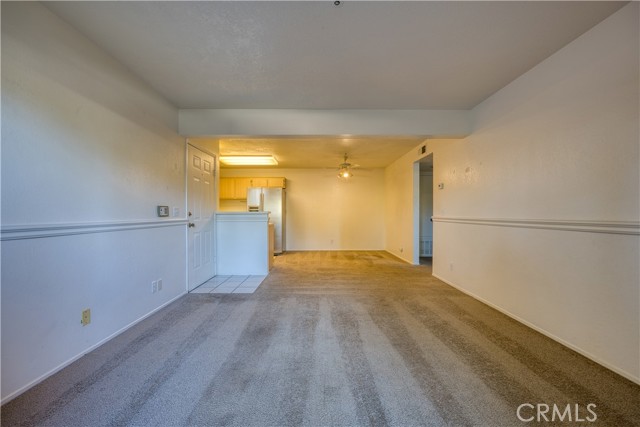 Welcome to this charming 1-bedroom, 1-bath condo located in the desirable Las Palmas community. This lower-level unit offers 640 sq. ft. of comfortable living space with a well-appointed kitchen that opens seamlessly to the dining area and living room. Sliding glass doors lead to a private patio, perfect for relaxing, tending a small vegetable garden, or enjoying the sunshine. A laundry closet with a full-size washer and dryer adds convenience. The spacious bedroom features a large picture window that fills the room with natural light and a generous walk-in closet for ample storage. Residents of Las Palmas enjoy peaceful walking paths, a sparkling community pool, and well-maintained common areas. The unit includes two assigned parking spaces, plus additional guest parking nearby. Conveniently located close to shopping, schools, and restaurants.