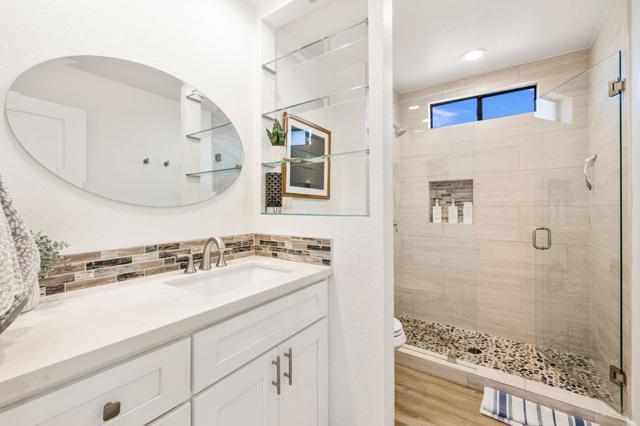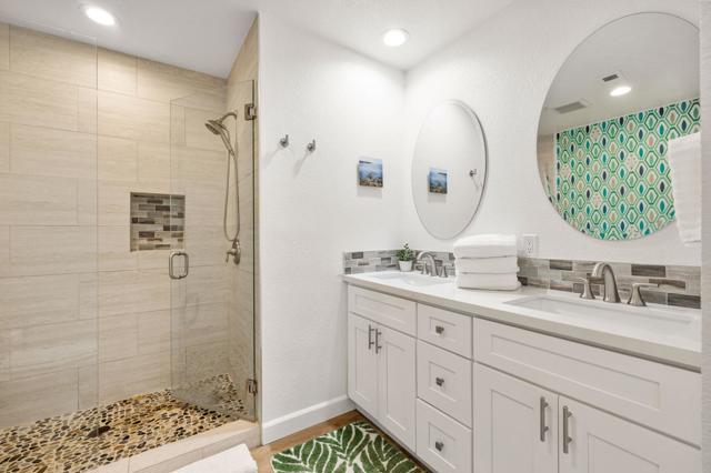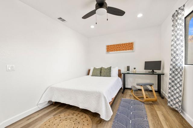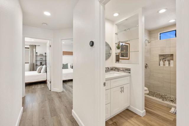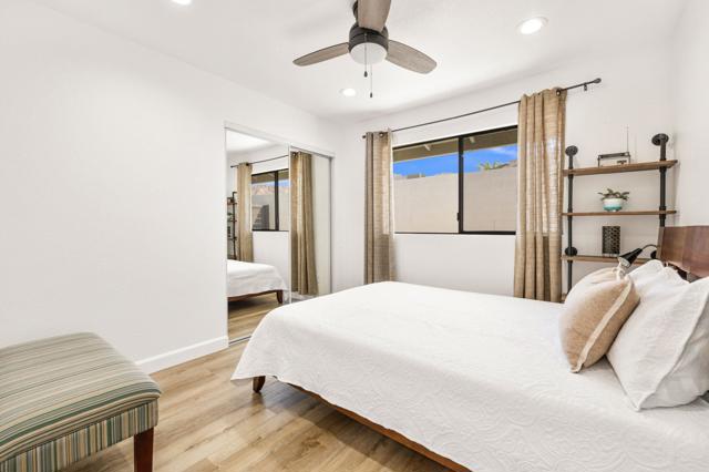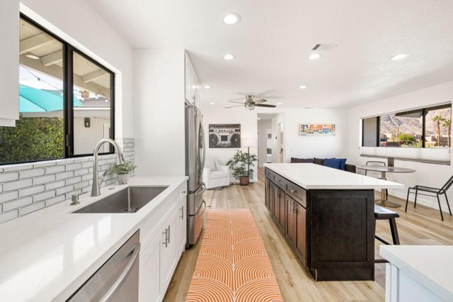 Hidden Gem in the Heart of La Quinta Cove!Welcome to your desert retreat! Perfectly situated on a premium corner lot in the sought-after top of the Cove location.This move-in-ready home, surrounded by breathtaking mountain views and abundant natural light, embodies the essence of desert living. Step outside to the sparkling pool, where sweeping views create a stunning backdrop and wide entry steps invite you to relax or wade in the sun.Inside, the gourmet kitchen is sure to impress with stainless steel appliances, plenty of storage, a kitchen island, and upgraded lighting, creating the perfect gathering spot.The spacious primary suite opens through French doors to a private courtyard retreat, where a soothing outdoor soaking tub and shower create a tranquil space for unwinding or bathing under the stars. This serene outdoor area offers the perfect balance of comfort and privacy, seamlessly blending indoor and outdoor living.Two inviting guest bedrooms offer comfort and style, while updated baths add convenience.In the rear yard, a gated driveway offers additional parking or storage space, ideal for accommodating extra vehicles or outdoor gear, perfect for both full-time living and a lock-and-go lifestyle.This home also features solar, providing increased efficiency and helping to reduce monthly utility costs, a feature that adds long-term value and peace of mind.Just a short walk to Bear Creek Trail and minutes from Old Town La Quinta, you'll enjoy easy access to top restaurants, boutique shopping, hiking, pickleball, and year-round entertainment.If you've been searching for a move-in-ready home in an unbeatable location with spectacular mountain views, this one is not to be missed!