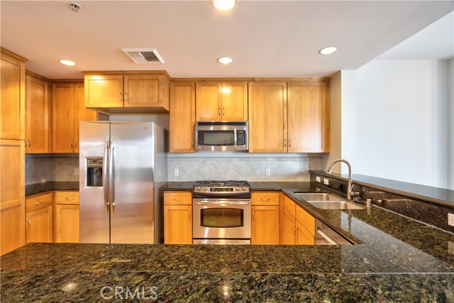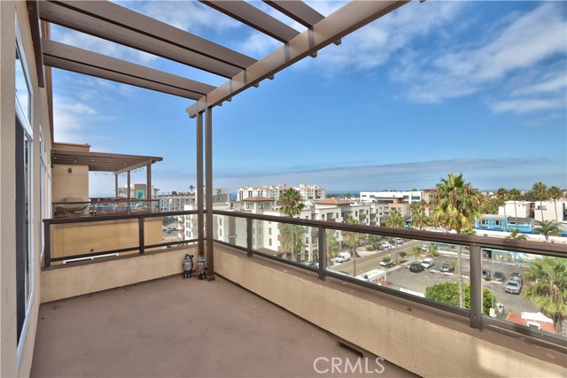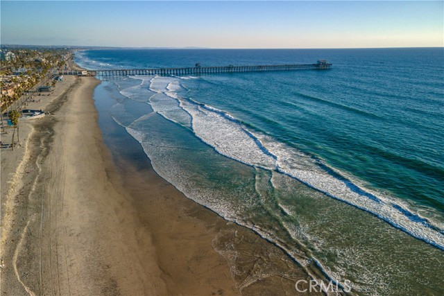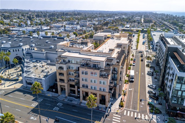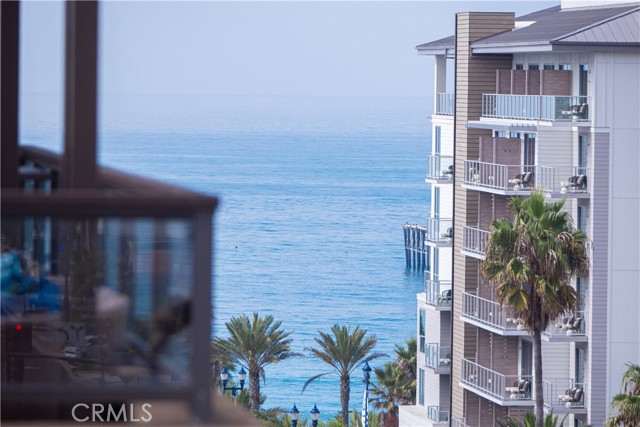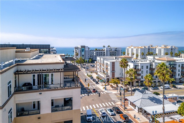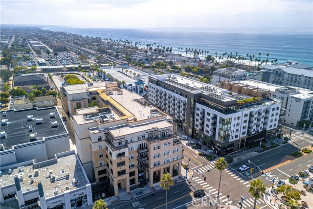 Prestigious top-floor penthouse available in Oceanside Terraces, one of downtown Oceanside's most desirable buildings. This exquisite residence offers unparalleled luxury, convenience, and a serene retreat, all while being ideally close to the ocean, fine dining, entertainment, and shopping. The penthouse features breathtaking ocean and sunset views from its prime location just two blocks from the ocean. The entire living area open to the Lanai via large sliders, allowing you to enjoy cool ocean breezes and expansive views to the north and south. Inside, the condo boasts high ceilings, an open chef's kitchen that flows seamlessly into a spacious family room with large windows, maximizing the stunning ocean vistas. You can also enjoy elegant dinners and panoramic city, ocean, and sunset views from the expansive wrap-around balcony. This residence includes two bedrooms and two and a half bathrooms. The primary suite offers a large bathroom with a huge walk-in shower, a jetted Jacuzzi tub, and double sinks. The secondary bedroom also features its own private bathroom with a walk-in shower, and a separate guest bathroom adds to the convenience. Additional features include hardwood flooring, designer fixtures, state-of-the-art stainless steel appliances, and triple-paned windows for soundproofing. The unit is all on one floor with no stairs, offering private elevator access and secured underground side-by-side parking for two cars, along with a storage area for bikes or surfboards. Building amenities include a jacuzzi, exercise room/gym, BBQ area, and a lounge area with a large outdoor fireplace set in a tropical and tranquil environment. The building provides high-tech security, secured private access, and 24-hour security. The HOA covers gas, all water, trash, security, gym access, a courtyard with a fireplace and BBQ, building maintenance, insurance, roof maintenance, pest control, storage, a spa, and a secured parking structure. The location offers excellent walkability and biking access to everything Oceanside provides, including the transit center just a block away with trains to LA and San Diego.