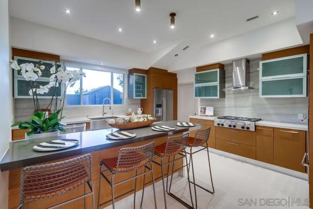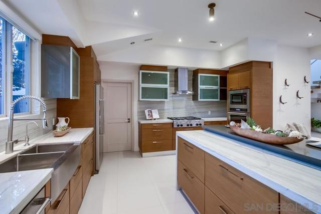 Modern coastal Home, recently remodeled, in LA JOLLA. This stunning 6 bedroom, 6.5 Bathroom home offers an ideal layout with 2 bedrooms on the main level and 4 upstairs. The primary suite features partial ocean views and a fireplace. The spacious floor plan includes a brand new constructed playroom/pool room with its own full bathroom, perfect for entertaining or guest use. Professionally designed, this exquisite home features rare upgrades like; Stone finished walls in foyer and bathroom, Seamless Walnut Texture kitchen cabinets with sandblasted glass doors and white macaubas and dark gray quartzite counter-tops. Stairs are made from steel structure and covered with Oak Wood with stainless steel handrail and tempered glass. Window coverings are dual neolux with motorized roman shades in Master Bedroom. Enjoy the convenience of key-less entry system with Ring doorbell. Take in the sun at the pool, completely renovated. You will truly enjoy touring the decor and openness of this magnificent home, designed for comfort and entertaining, this home blends modern upgrades with coastal charm.