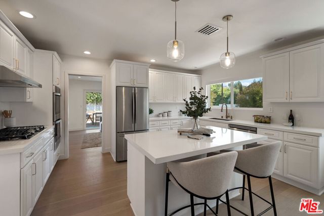 Exquisitely remodeled single-story home nestled in one of Calabasas's most desirable neighborhoods. This stunning residence blends modern comfort with timeless style, featuring an open floor plan that's perfect for both everyday living and entertaining. Inside you will discover a bright interior filled with natural light, complemented by hardwood floors and recessed lighting throughout. The spacious living areas flow seamlessly into the updated kitchen and dining room, creating a warm and inviting atmosphere. Outside, enjoy the ultimate California lifestyle with a sparkling pool and a private backyard ideal for relaxing or hosting family and friends. Located in a quiet, friendly neighborhood close to top-rated schools, parks, and the best of Calabasas shopping and dining, this home truly has it all.