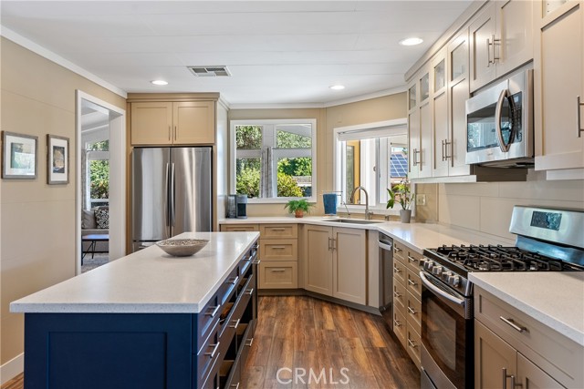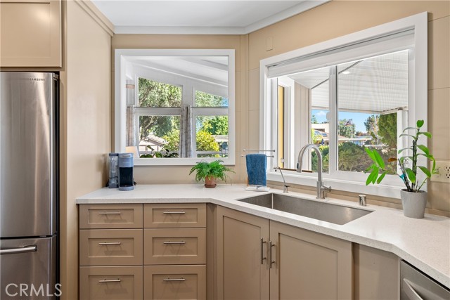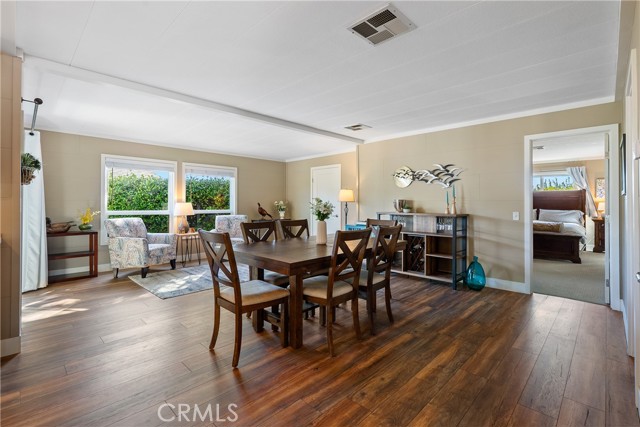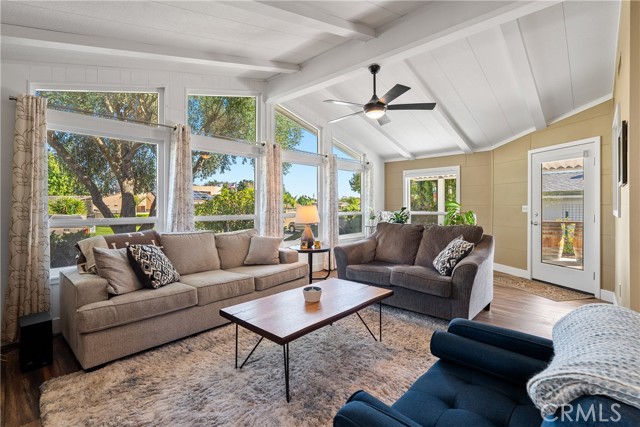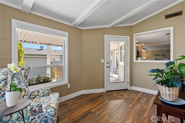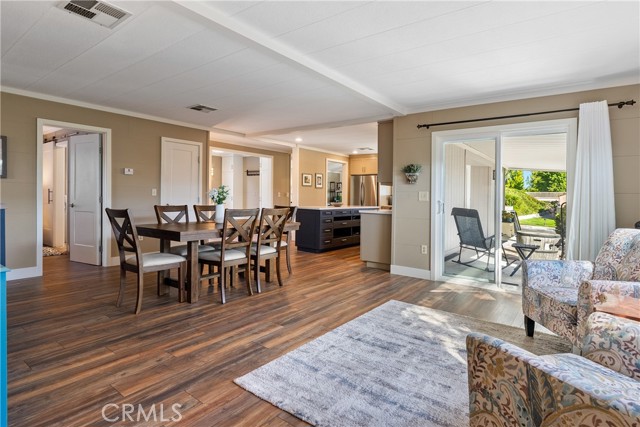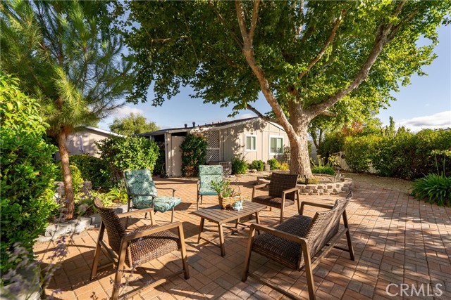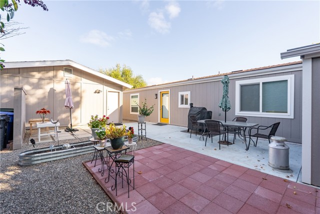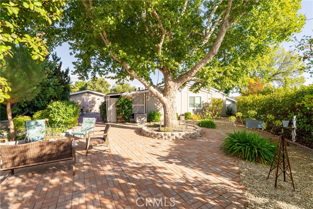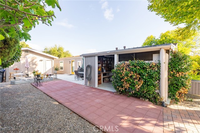 Welcome to 1320 Teal Avenue, a stunning and sophisticated home located in the Quail Run community of Paso Robles — a 55+ neighborhood! Set on a spacious 7,000+/- sqft lot, this beautifully updated manufactured home features 2 bedrooms, 2 bathrooms, and 1,856+/- sqft of thoughtfully designed living space. Step inside the family room filled with natural light from a multitude of windows and soaring cathedral ceilings accented by exposed wood beams. The layout flows into an informal dining area, and a well-appointed kitchen. The kitchen boasts soft-close cabinetry, designer solid-surface countertops, a walk-in pantry, and a stainless-steel appliance package for those who love to cook and entertain. Overlooking the kitchen is a welcoming living room with a sliding glass door that opens to the front porch for relaxing and enjoying your morning coffee. A charming foyer area leads to the backyard, while the home’s layout offers two private primary suites, each with its own bathroom. The indoor laundry room includes direct access to one of the bedroom suite’s walk-in closets for added convenience. Throughout the home, custom-milled siding and trim lend a touch of craftsmanship and sophistication. The outdoor spaces are equally impressive. The expansive lot features a brick patio shaded by a mature elm tree, garden beds, and a serene atmosphere that creates a retreat-like setting. The side yard includes a shed equipped with cabinetry and a sink for additional storage or workspace. Completing this beautiful property is a detached 2-car garage. Residents of Quail Run may enjoy access to a host of amenities just across the street, including a clubhouse, pool, spa, tennis courts, shuffleboard, and horseshoe pits, plus designated RV parking for those in need. With modern upgrades, elegant design, and a vibrant community setting, 1320 Teal Avenue embraces the charm of Paso Robles Living.