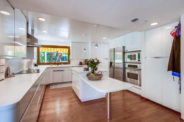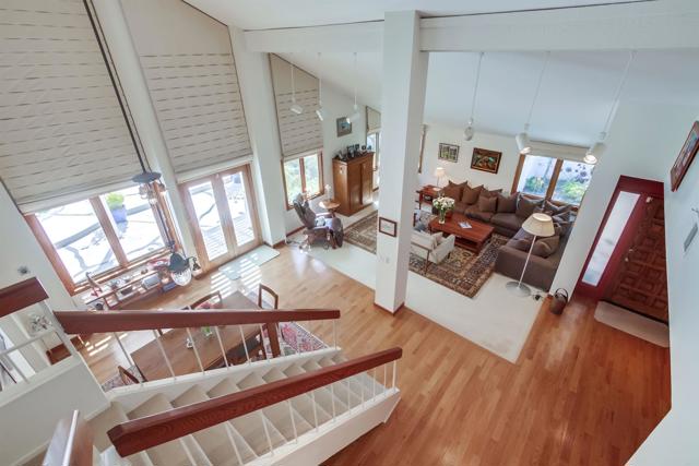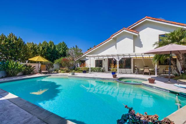 Welcome to this beautiful and spacious 4-bedroom home located in the highly sought-after neighborhood of Loma Del Cielo West! This property offers tropical lush landscaping and a waterfall and pond to greet you at the front door entryway. The backyard is truly a sanctuary with a gorgeous sparkling heated pool & spa and extreme privacy. The interior offers soaring vaulted ceilings for a dramatic entrance. The primary bedroom is located on the first floor with heated flooring in the bathroom, walk-in closet, and offers a private outdoor retreat. The den offers a cozy gas fireplace. There is an additional family room on the second floor. Two of the bedrooms have access to a huge wrap-around deck with views! The windows have been upgraded with dual pane and Tilt-Turn. Other features are stainless steel appliances, security cameras, alarm system, multiple large walk-in closets for storage, brand new gas furnace, newer LG washer/dryer, and newer pool pump. No HOA fees and just minutes away from the beach!!
